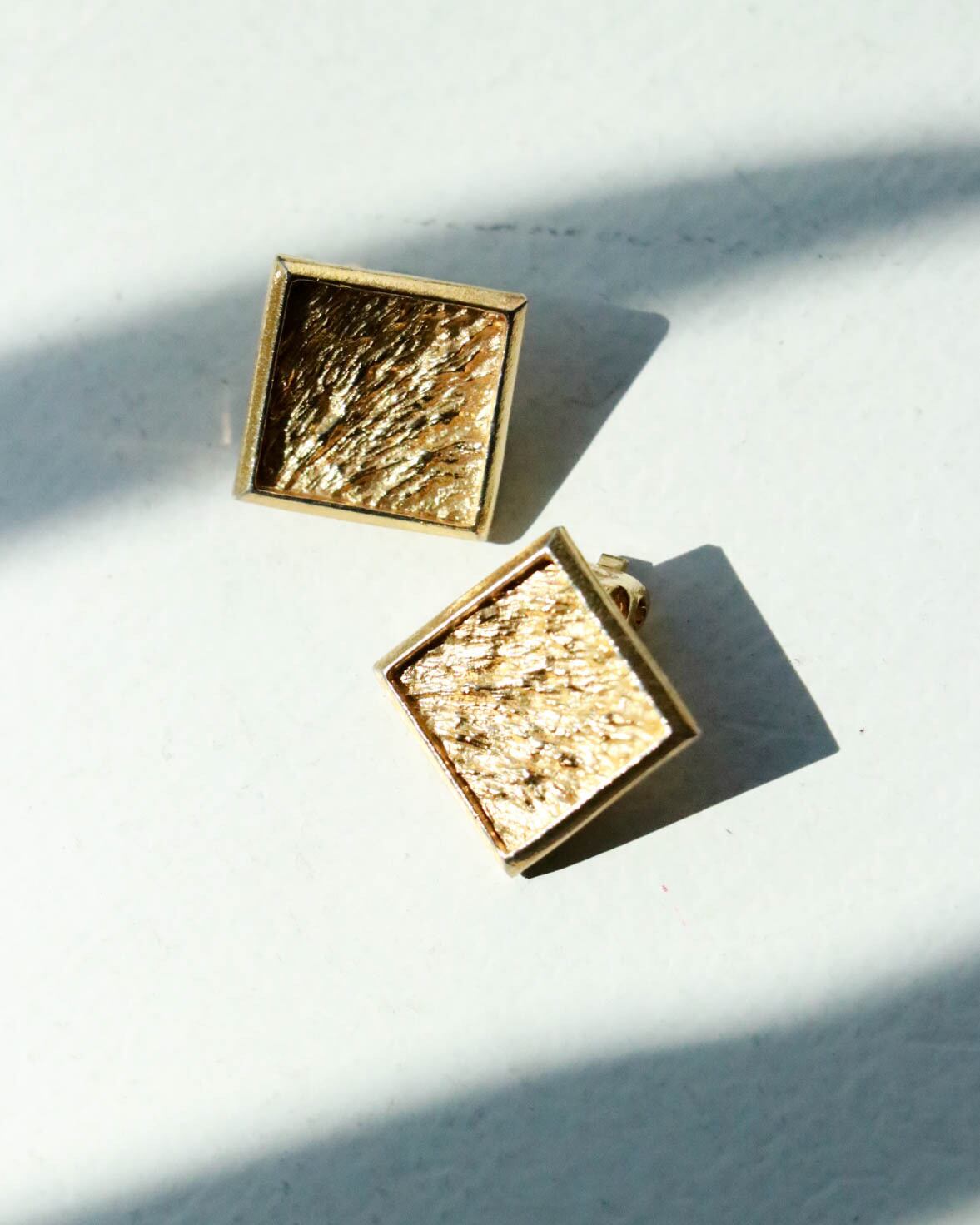 クラシックな雰囲気を保つゴールドカラーのスクエアデザインイヤリングが入荷しました。