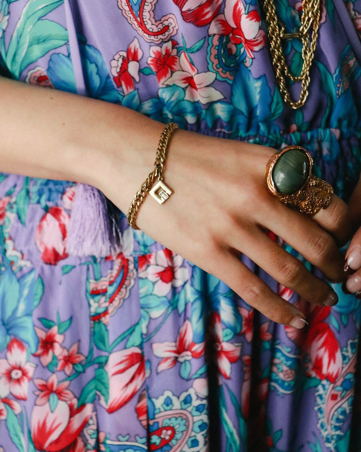 ポイントになるチャームと厚みのある喜平チェーンタイプで手元にボリュームをつけてみてはいかがでしょうか。