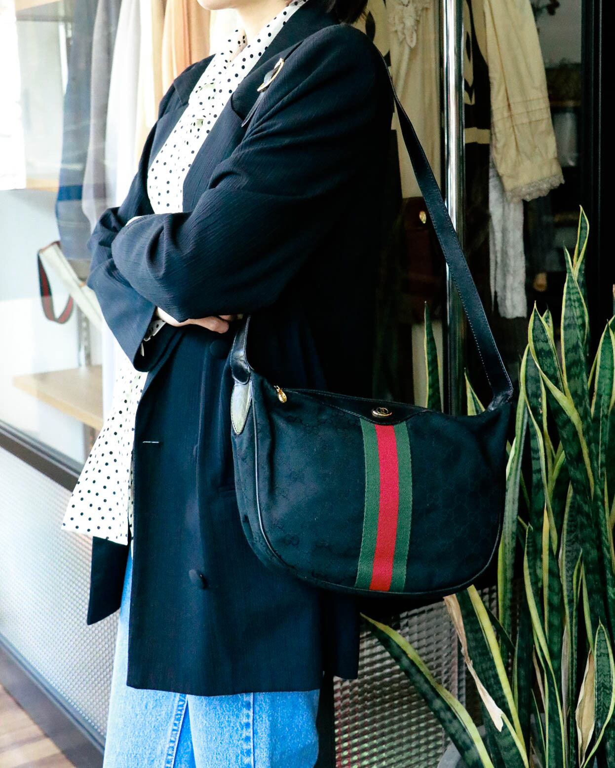 幅広い世代に人気のGUCCIのモノグラム。こちらは、容量感たっぷりの半円デザインが嬉しい、80'sのショルダーバッグ。