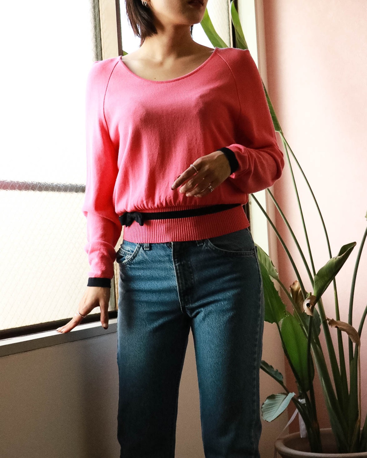 ヴァレンティノのレトロなピンクがキュートな薄手ニット。