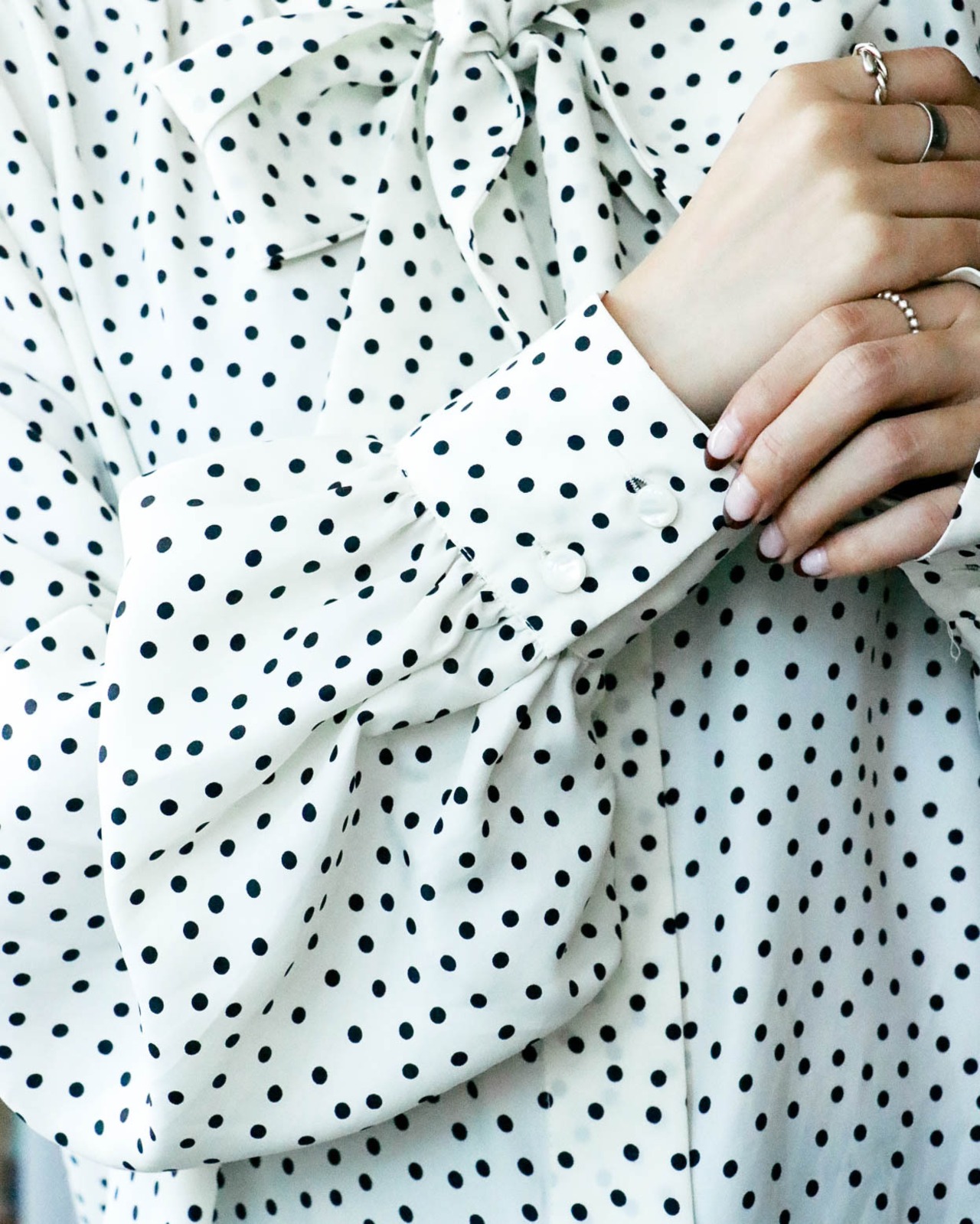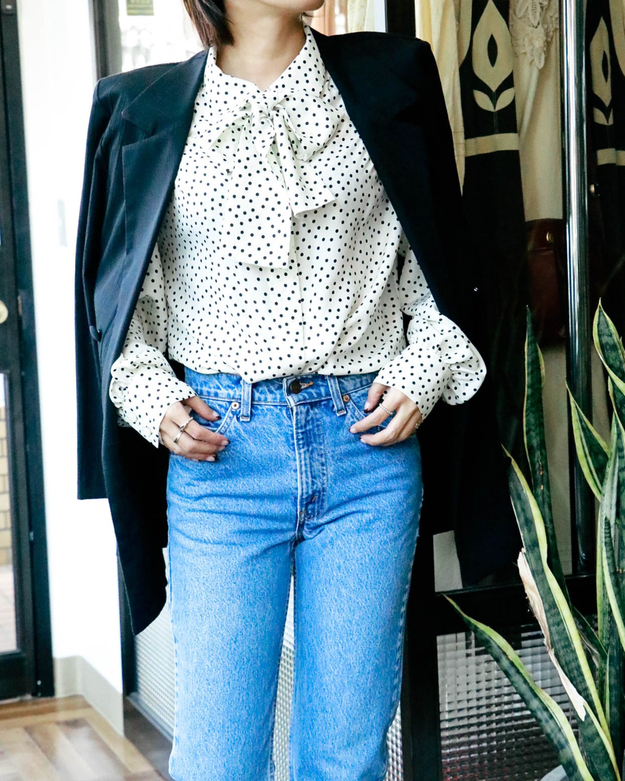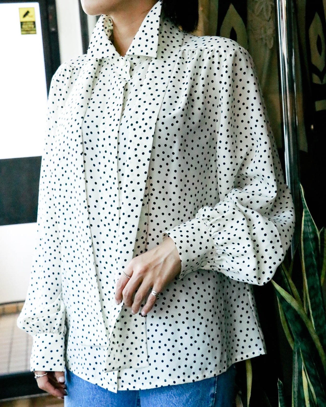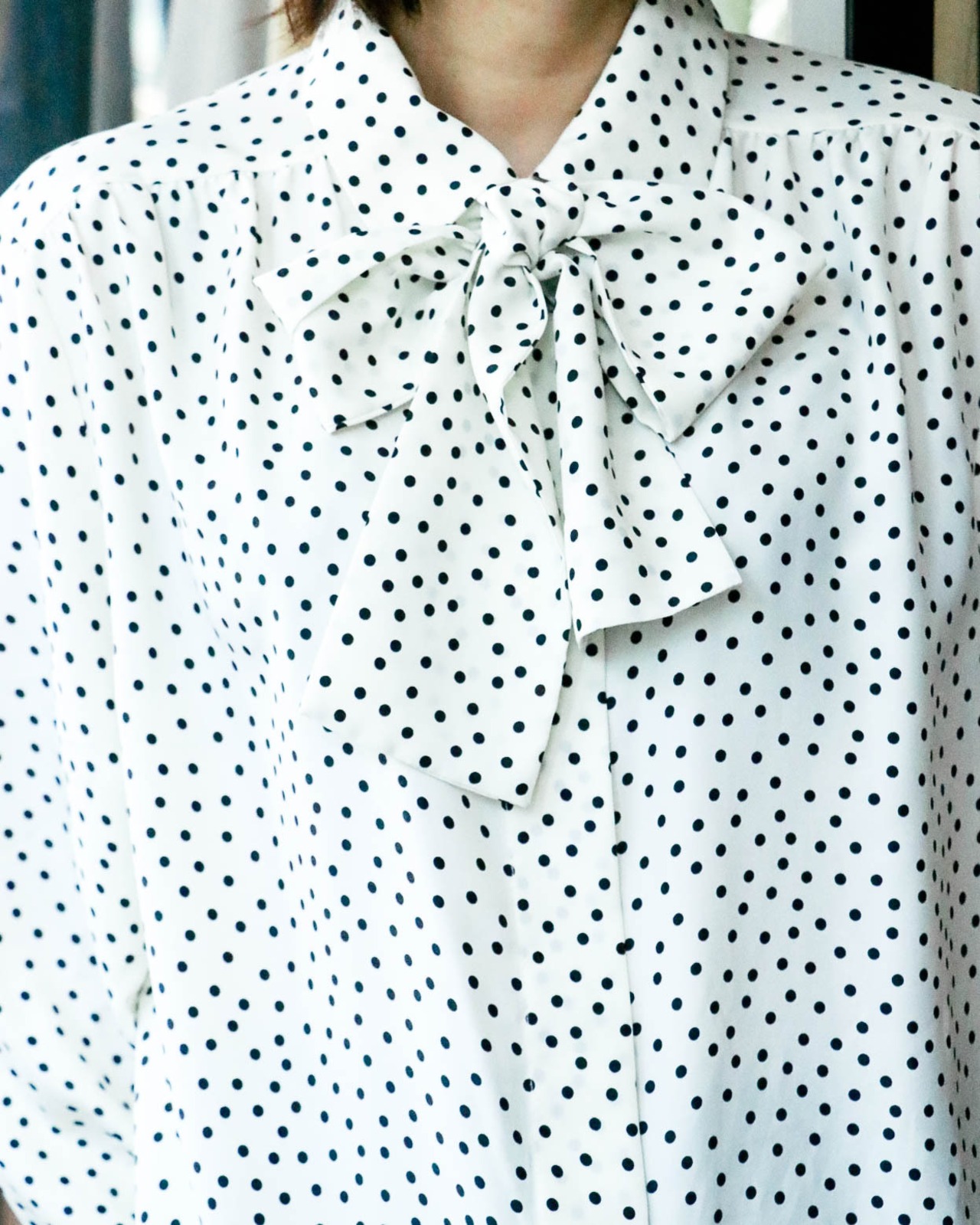 こちらは、シャツとしてもボウタイブラウスとしても楽しめる、嬉しい2way仕様。