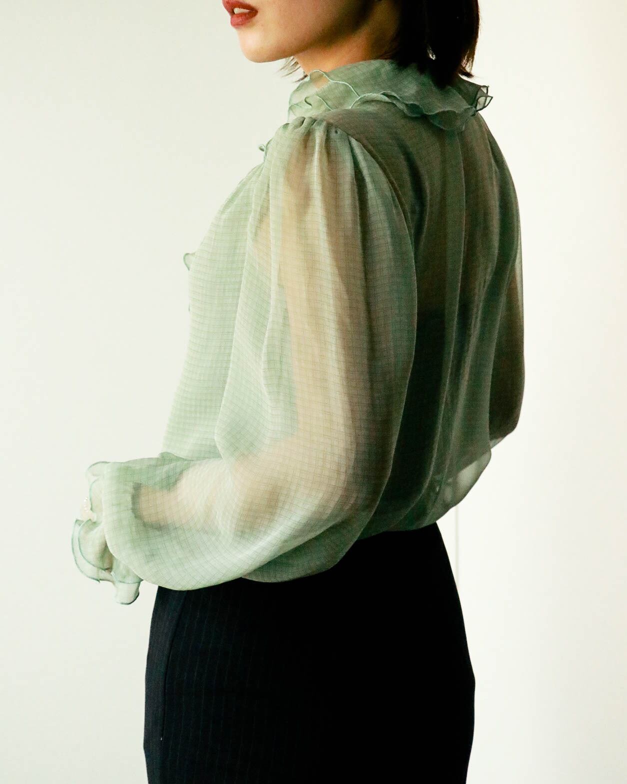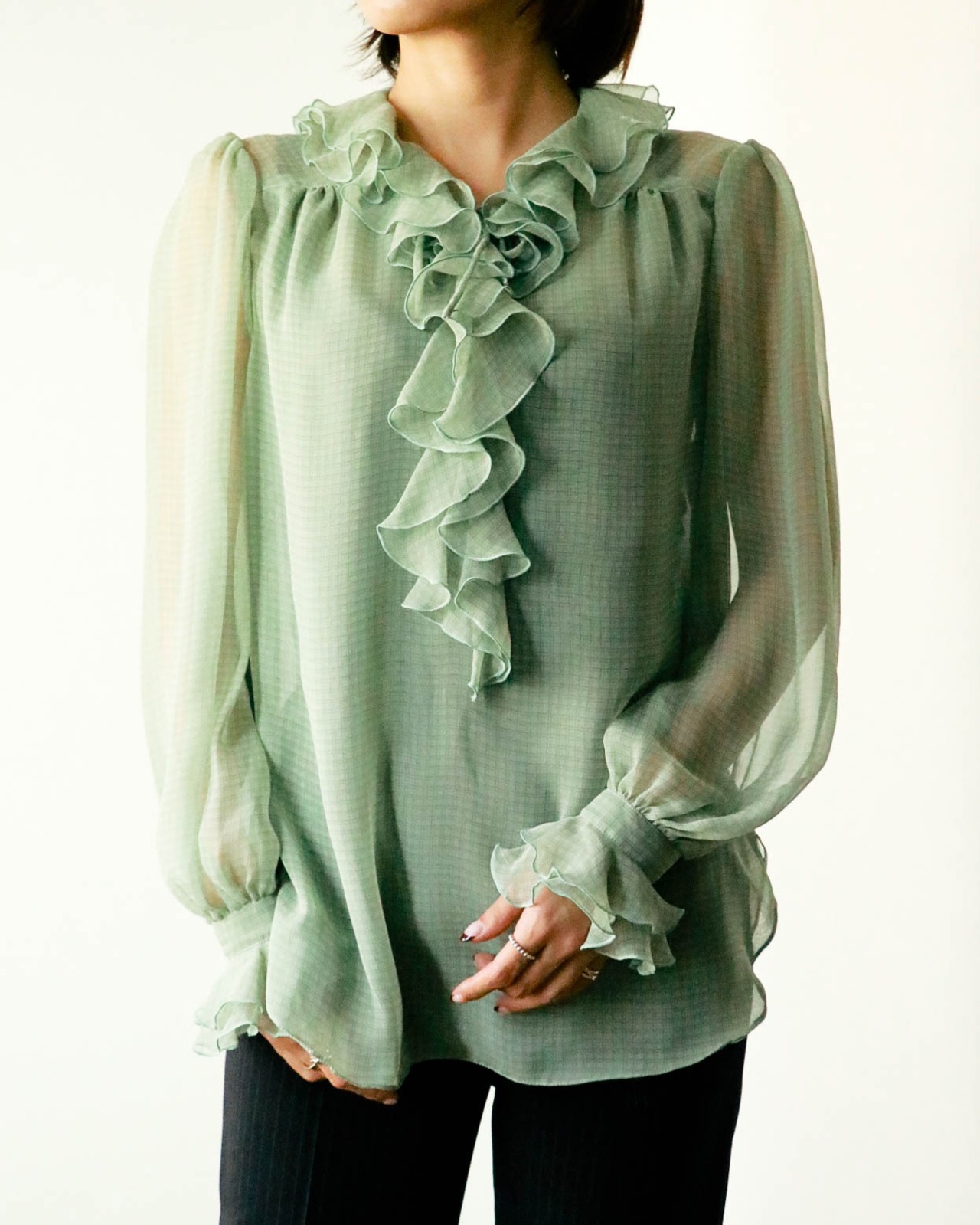 春めく季節にフィットするシースルーフリルブラウスが入荷しました。