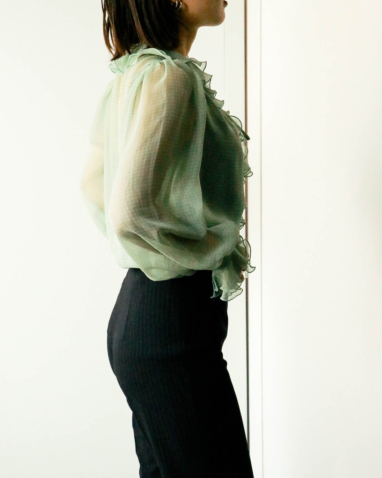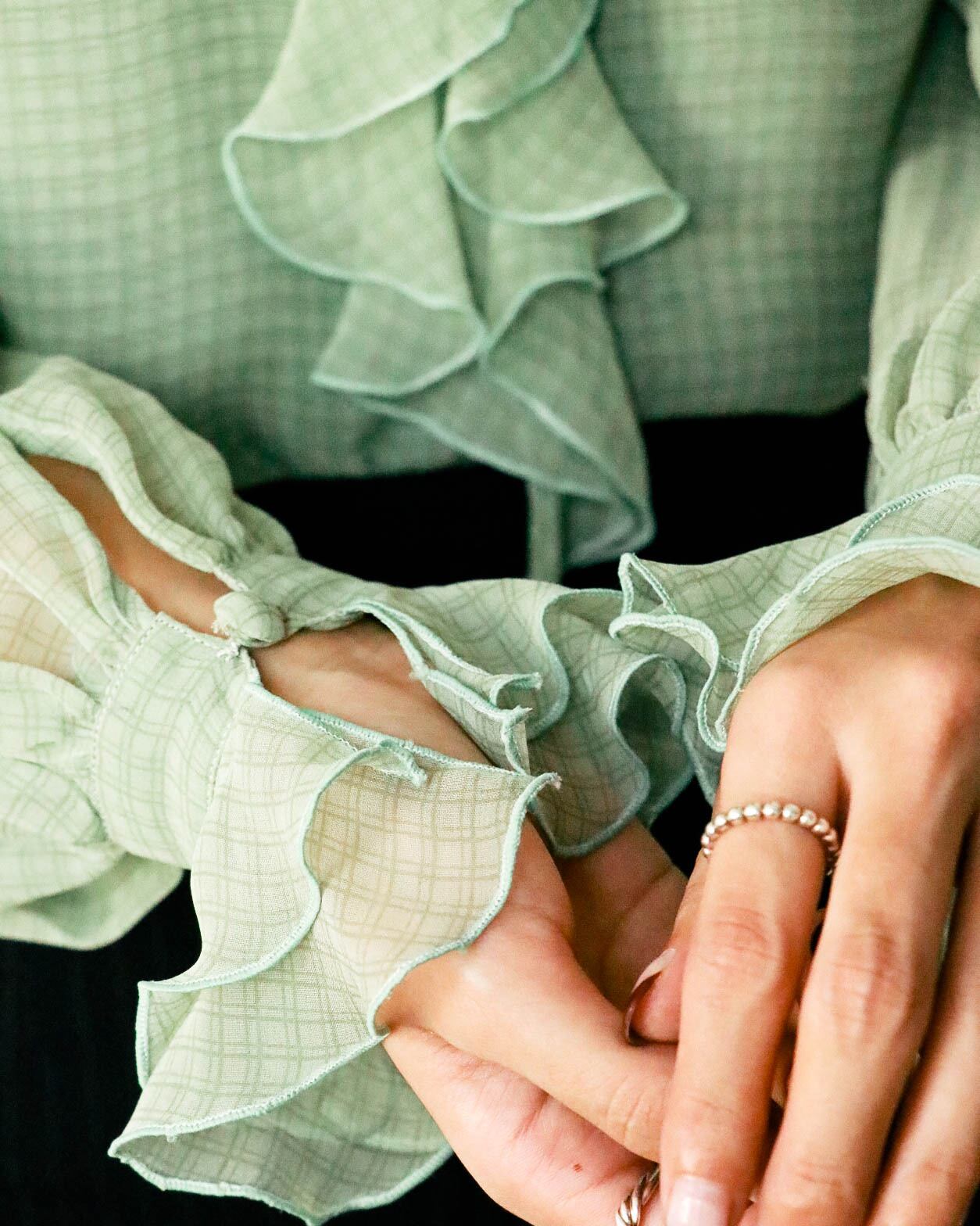 ラッフル仕様はカフの部分までこだわりが行き届いていて、ついつい風にたなびかせたくなる。