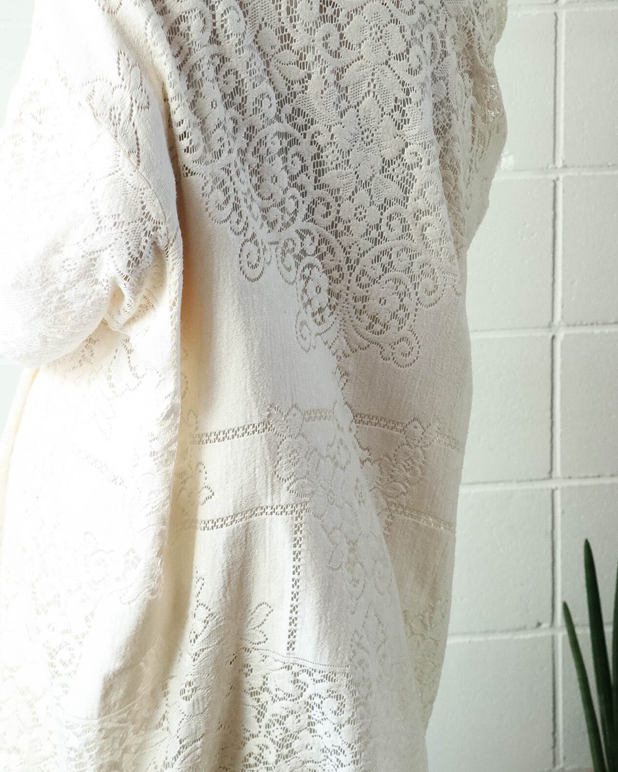 ホワイトカラーと総レースが春夏ムードを涼しげに高めてくれる70年代のガウンです。