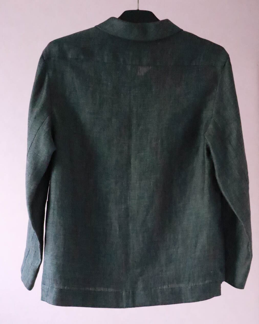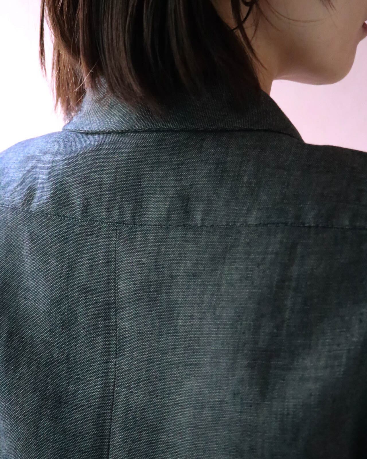 リネンの春らしい素材感に気分も軽くなるシックなブラックジャケットはメゾンブランドシャネルのもの。クラシックなラウンド型の襟にcocoマークが入ったボタン達が上品なアクセントに。