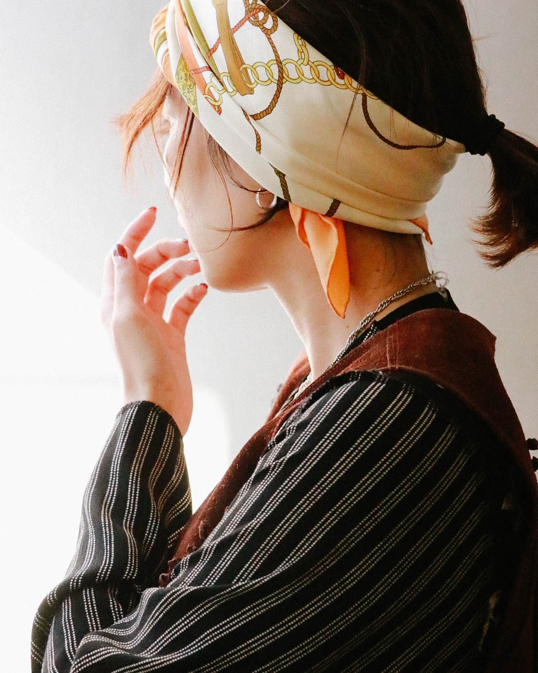 セリーヌのシルクスカーフ。大判サイズでアレンジは自由自在!