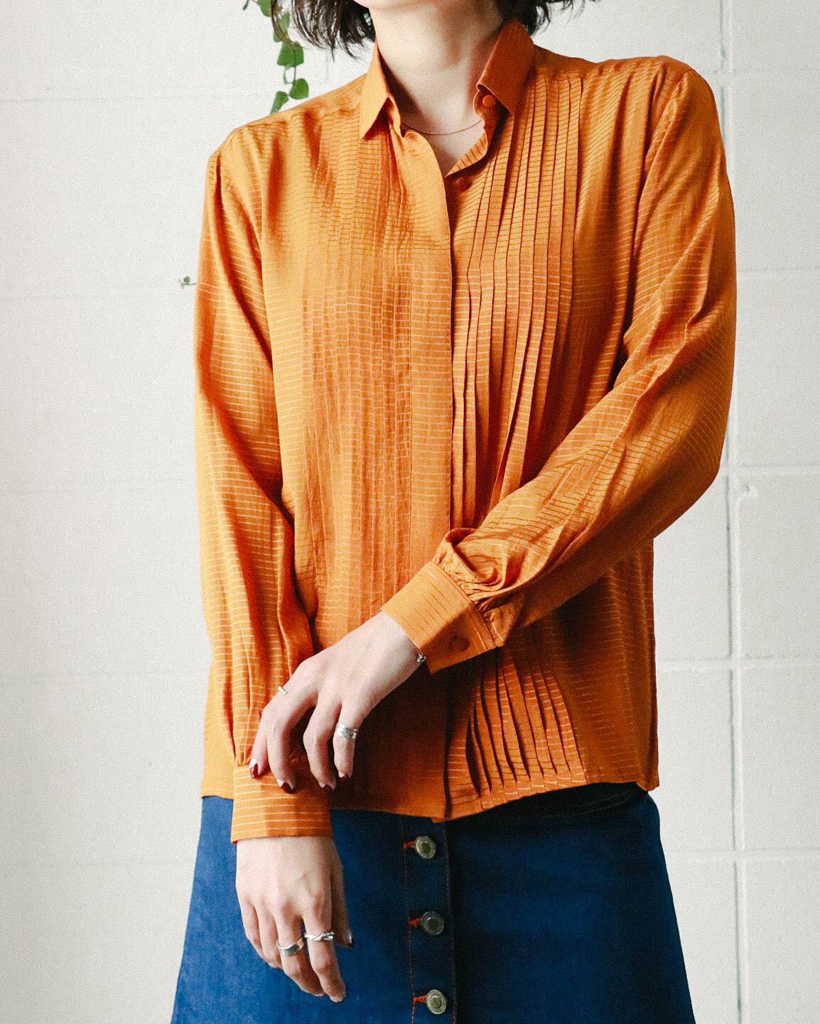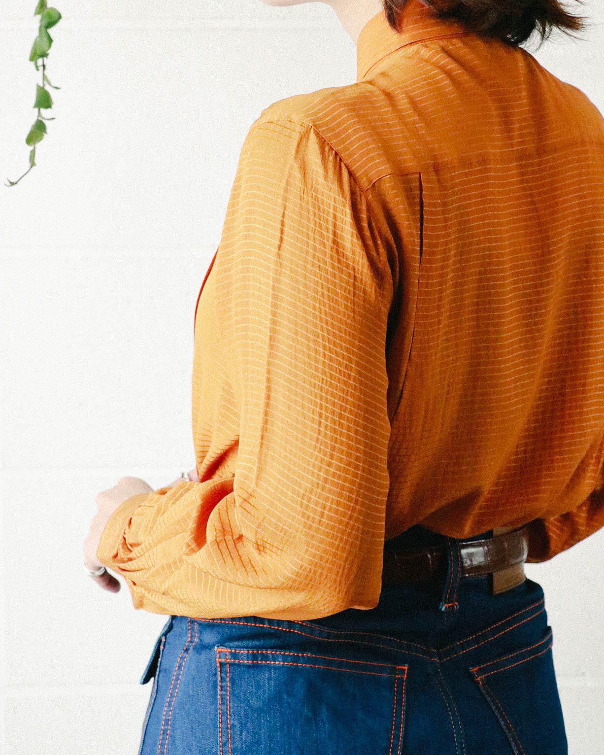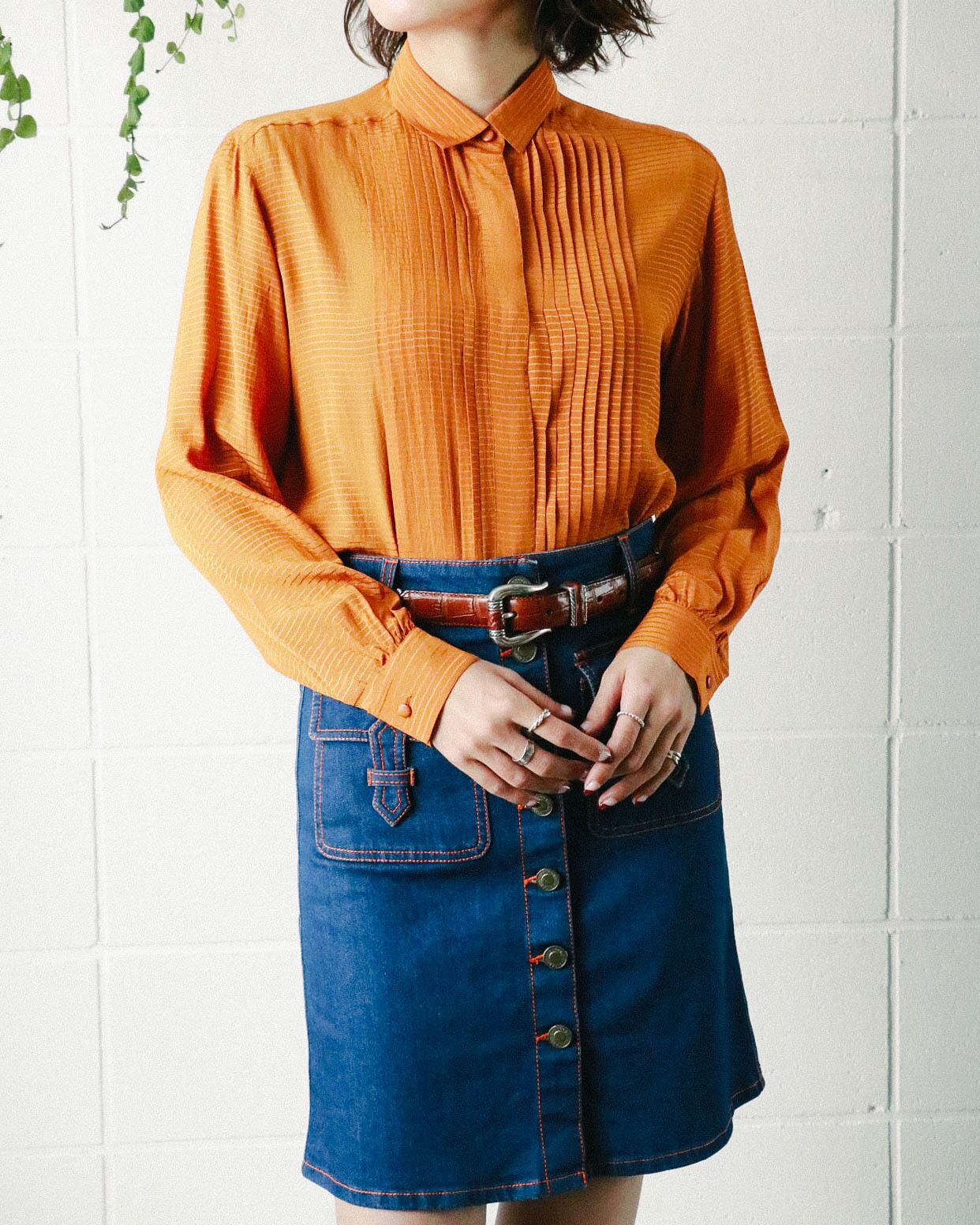 落ち着きのあるオレンジカラーはデニムとの相性抜群。