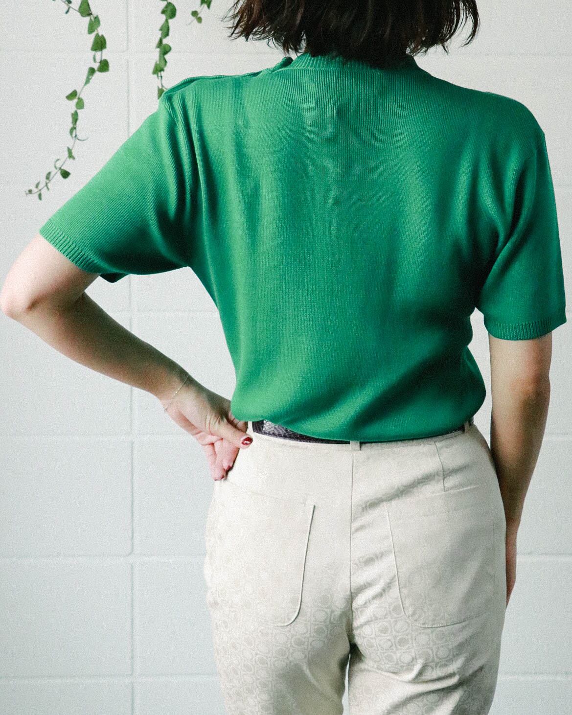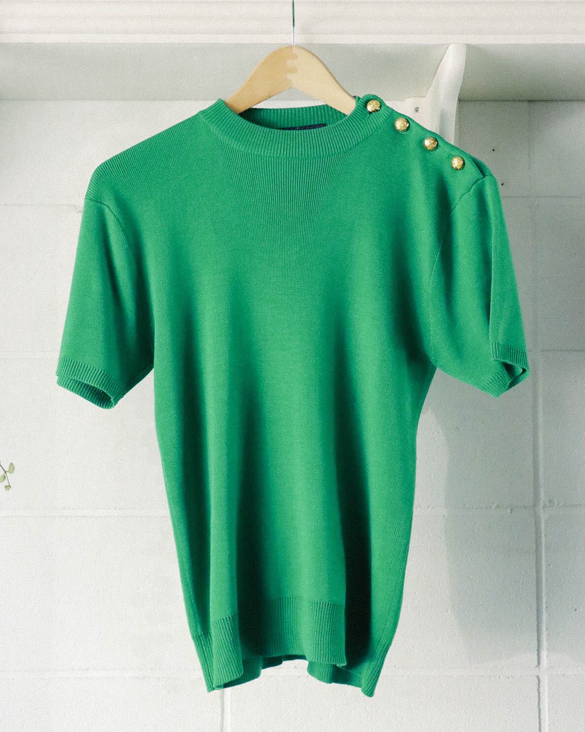 春を香る綺麗なグリーンニットはラルフローレンのもの