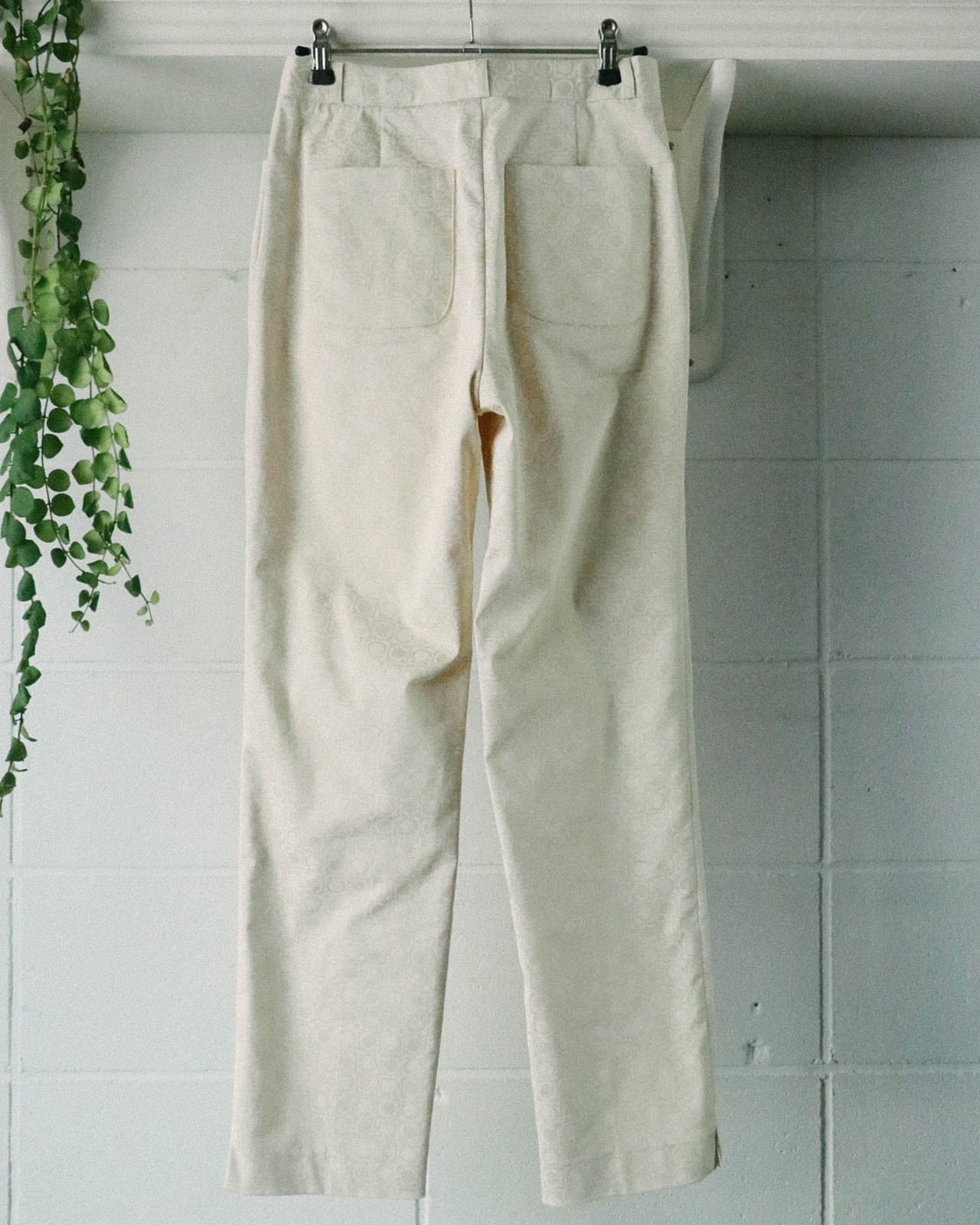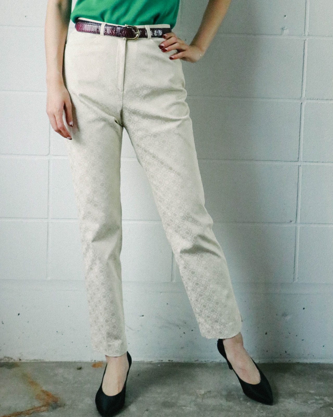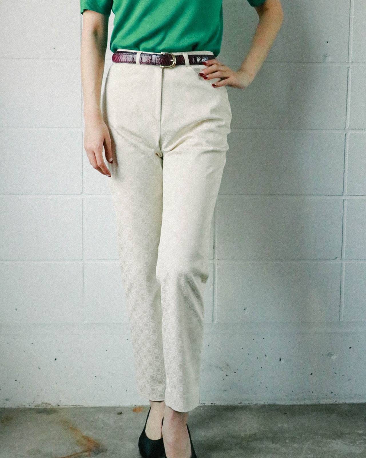 こちらはオフホワイトのプリントになったハイウエスト のパンツ