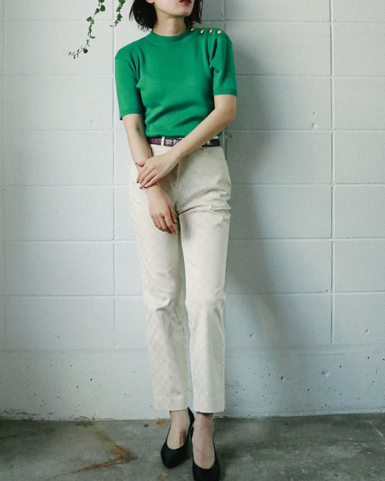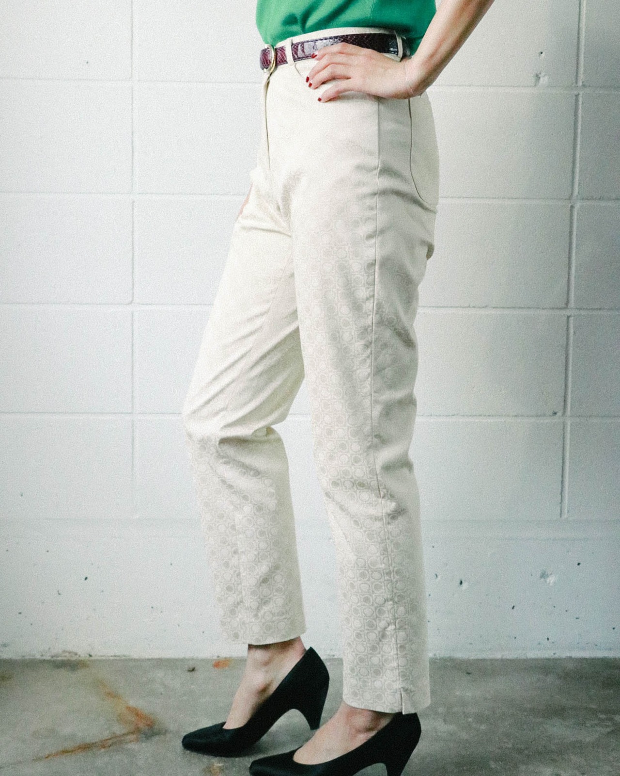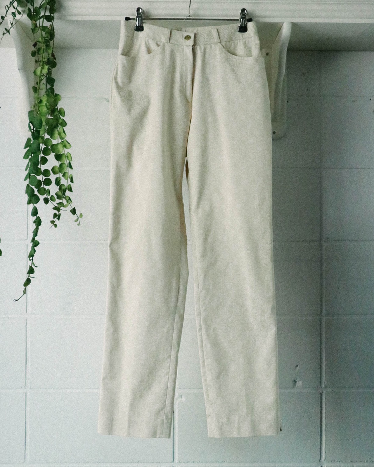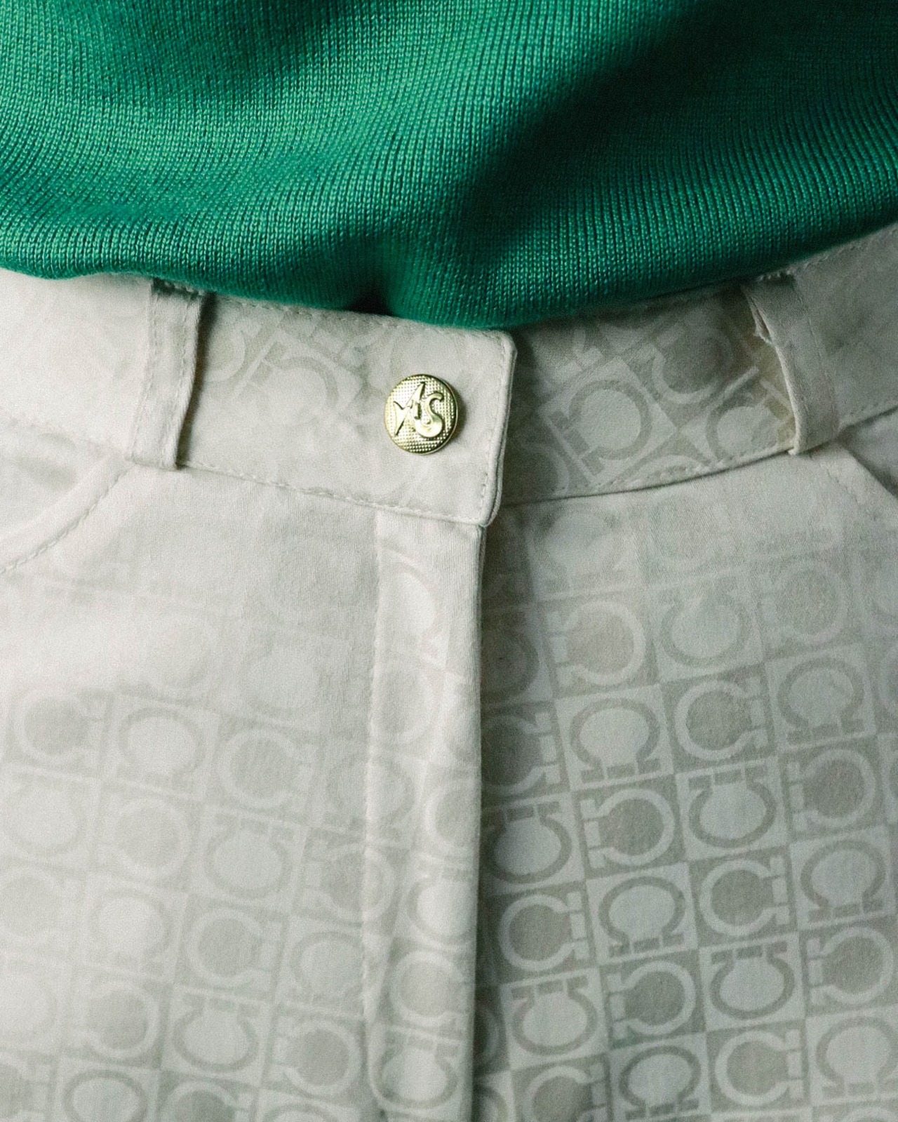 こちらはオフホワイトのプリントになったハイウエスト のパンツ