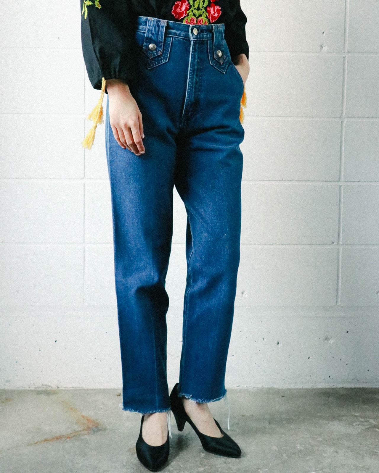 裾のカットオフやベルトループのデザインがヴィンテージらしく、こなれた印象。