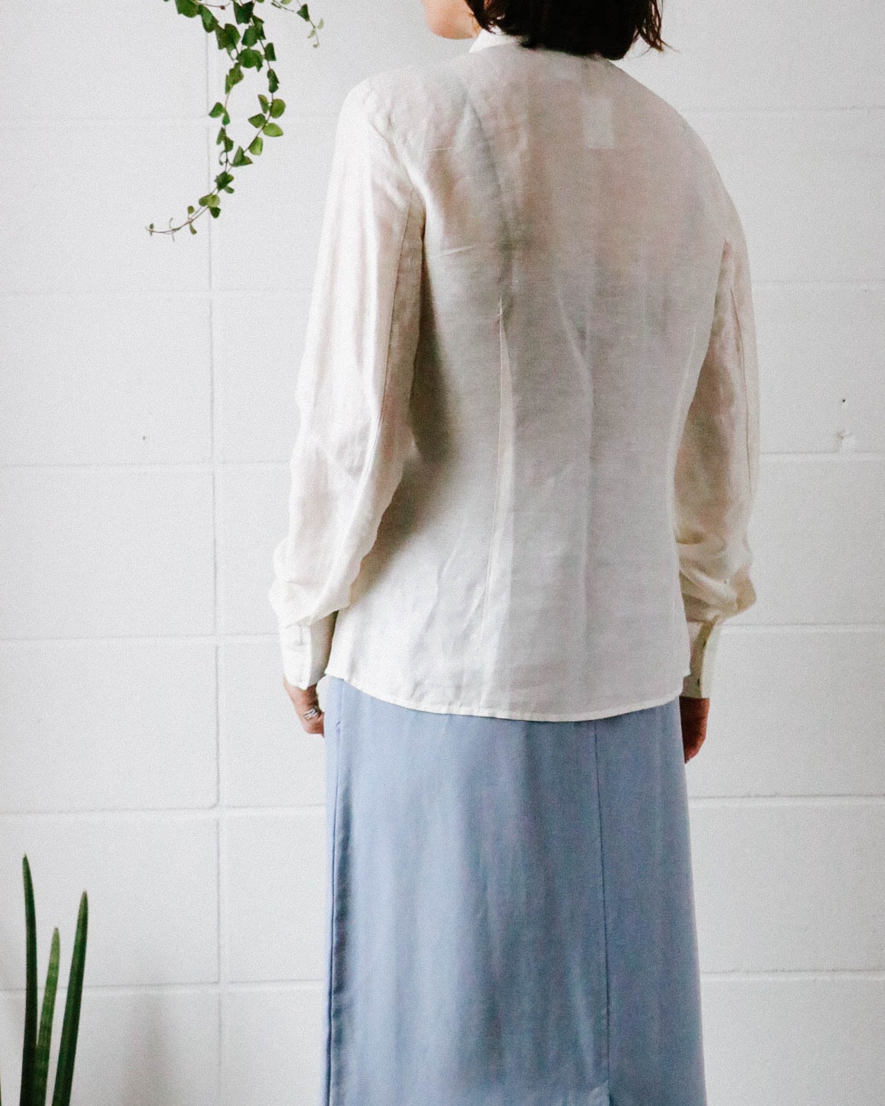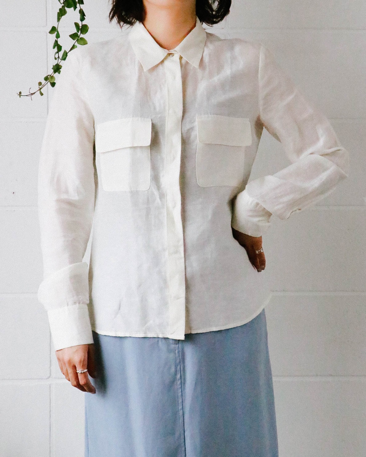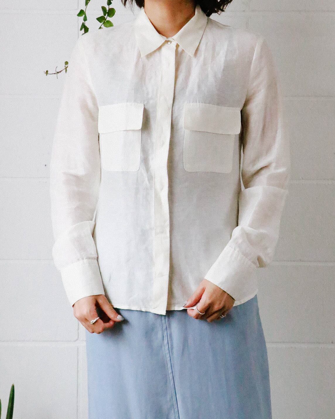 オフホワイトで気分が春めくマックスマーラのブラウス。