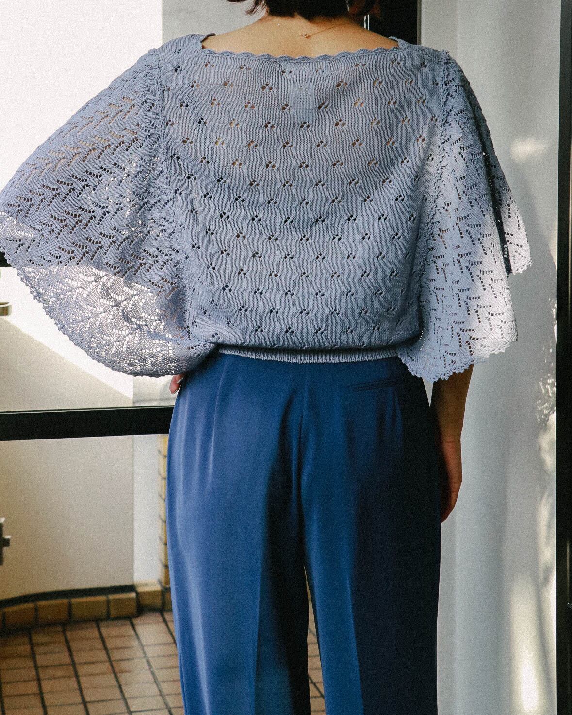 ロマンティックなバタフライスリーブが二の腕をすっきり魅せてウエストはリヴできゅっと締まりコンパクトシルエットがバランス◎
