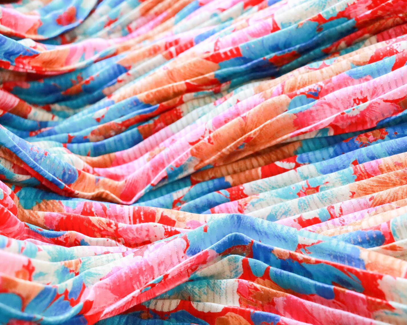カラフルでワクワクする色彩に花模様が浮かび上がるヴィンテージならではのスカート。