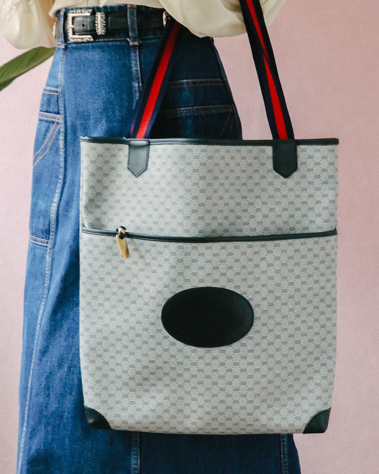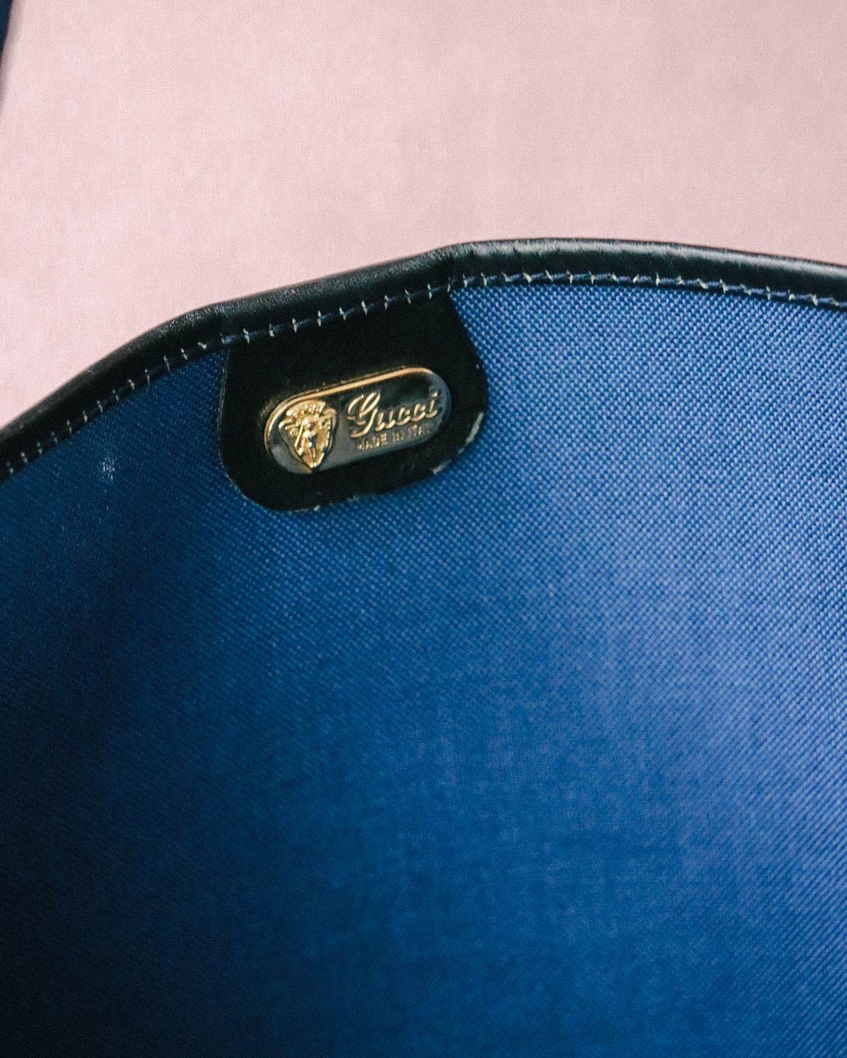 ネイビーを貴重としたとシェリーラインのバランスがオールドグッチらしさを象徴。