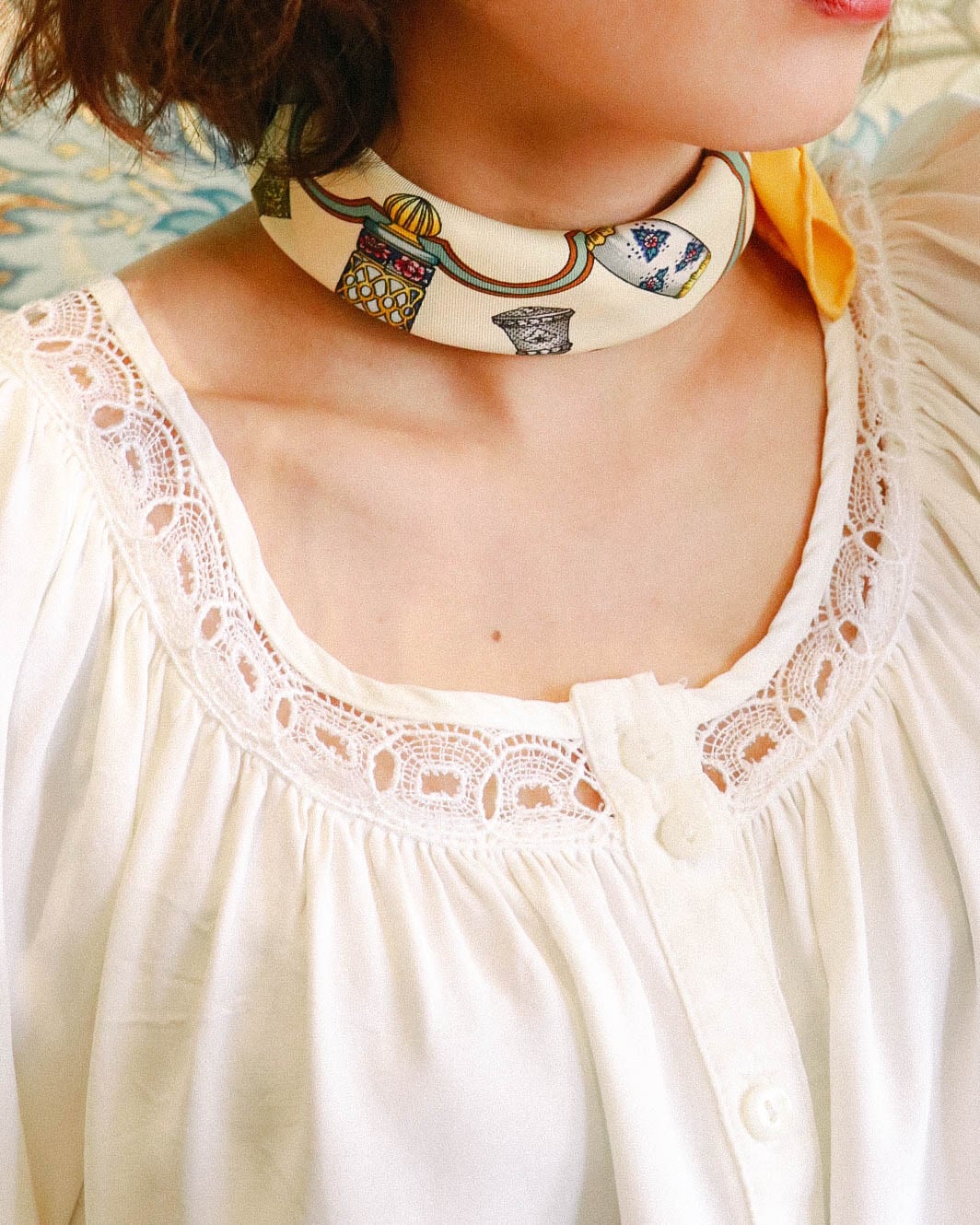 一点投入するだけでグッと女性らしさがアップする名脇役スカーフ。