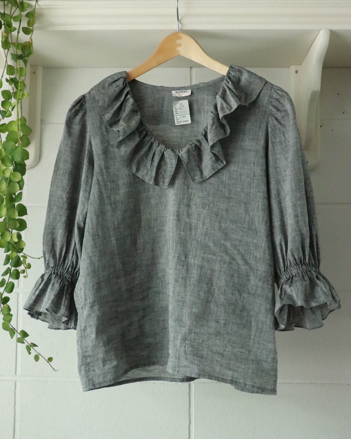 淡いグレーとほどよいボリュームで日常着にとりいれやすい。