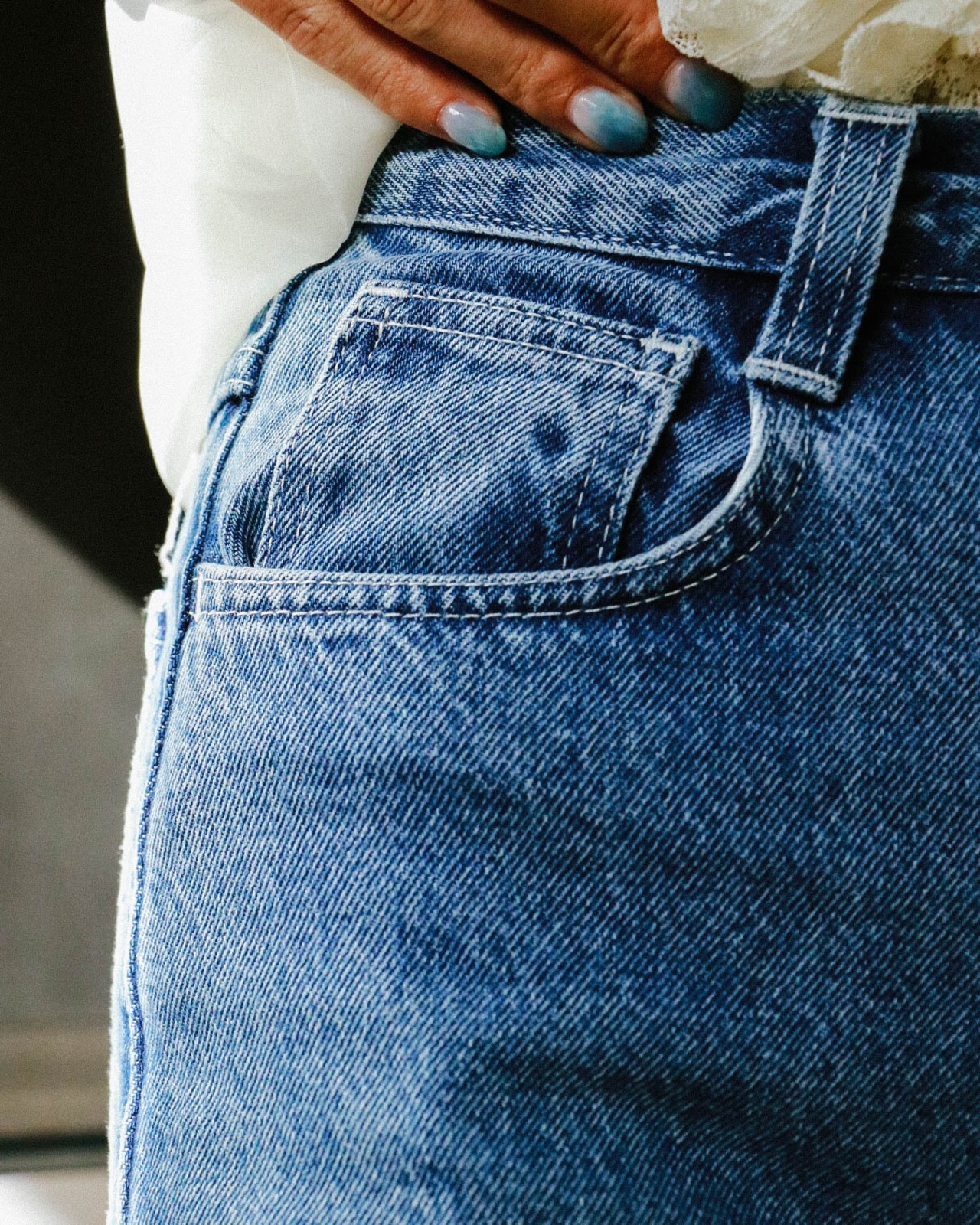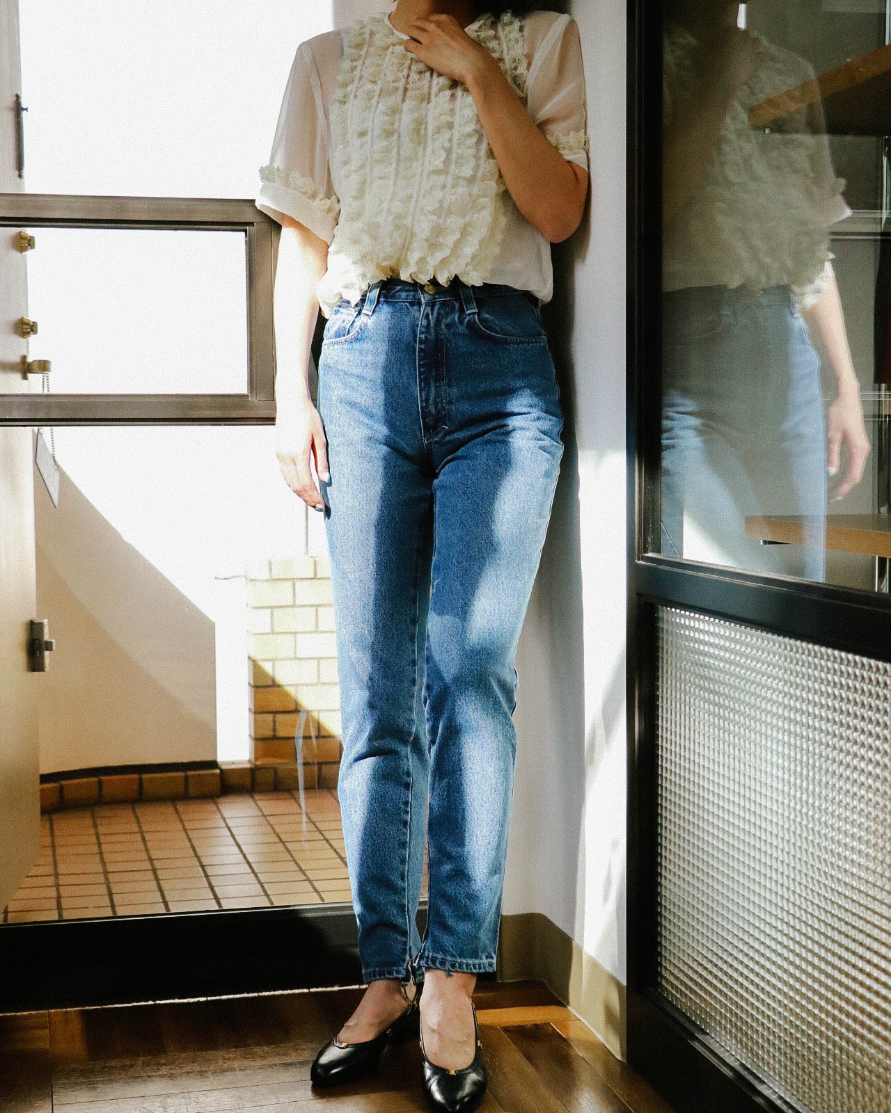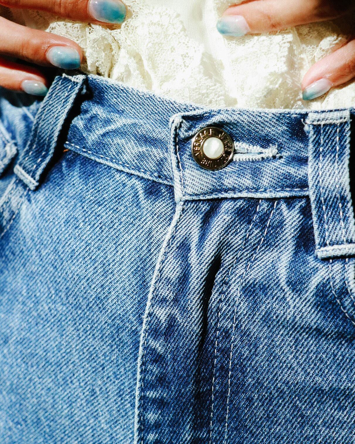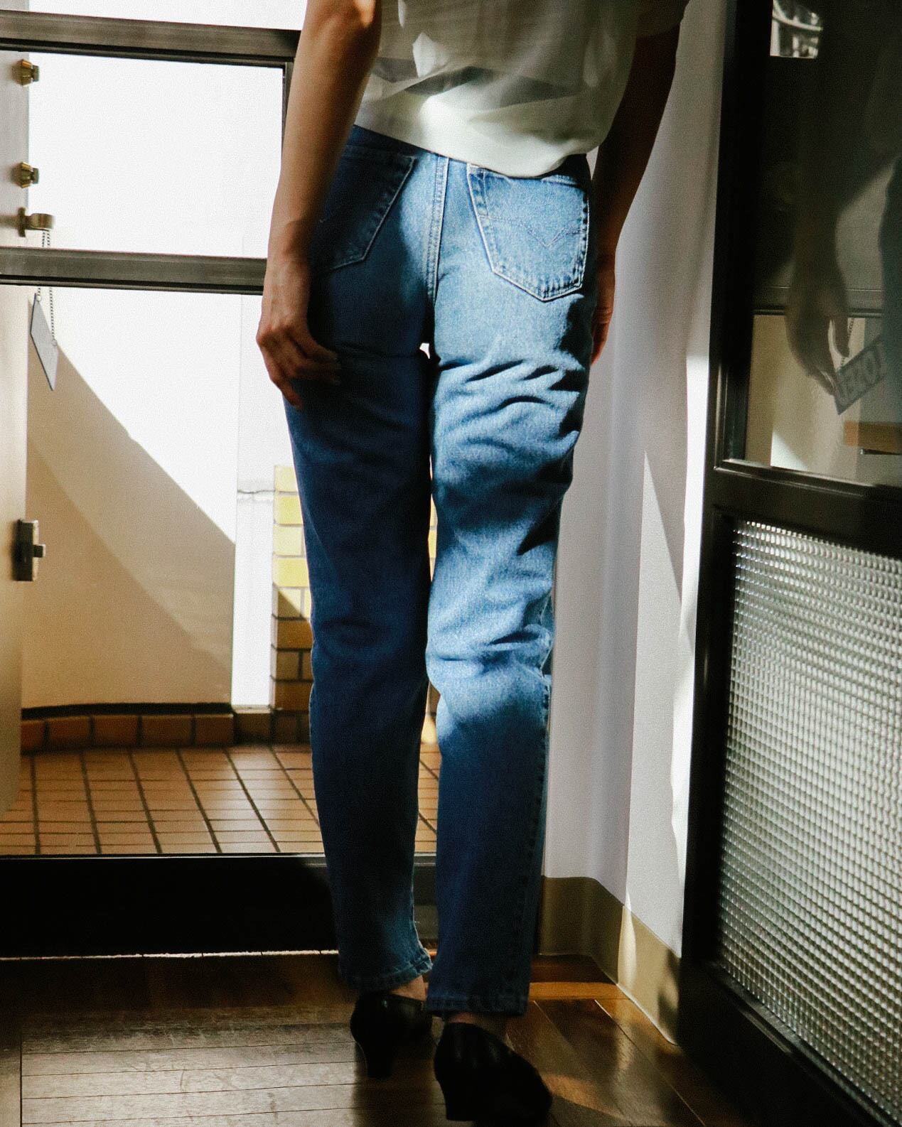 裾のカットオフやウエストタグのデザインがヴィンテージらしく、こなれた印象。