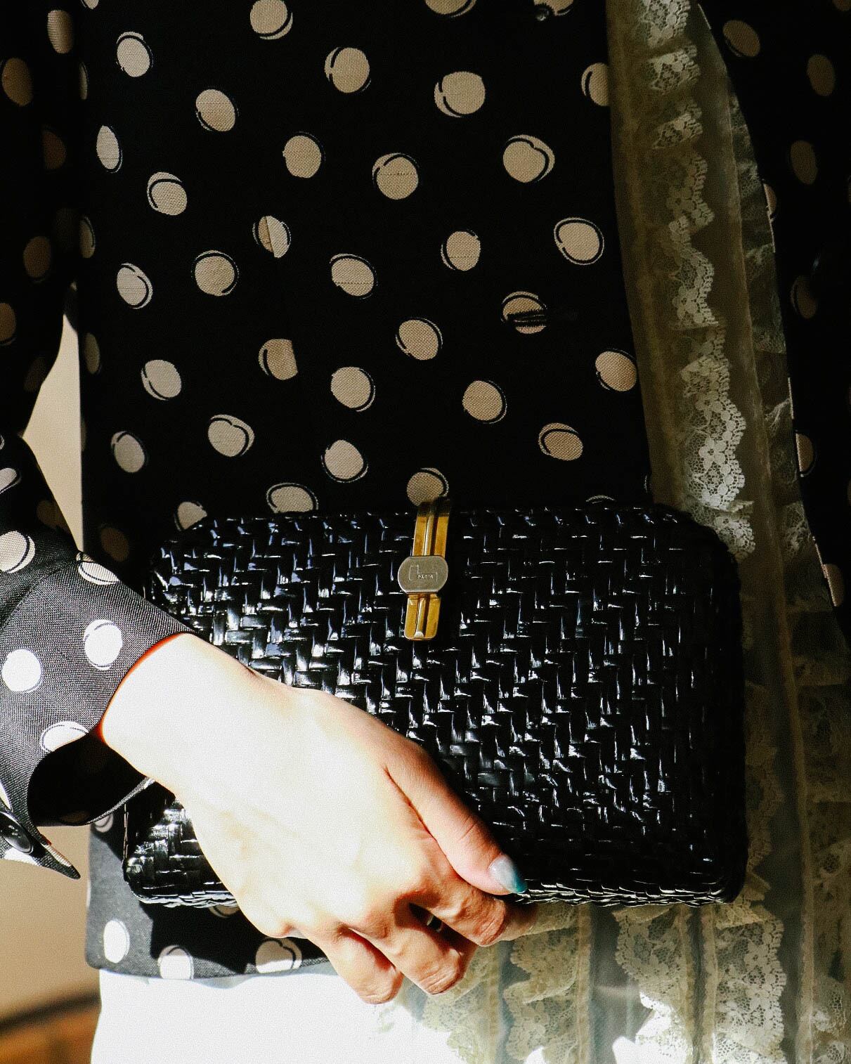 光沢あるブラック籐がめずらしいランセルのショルダーバッグ