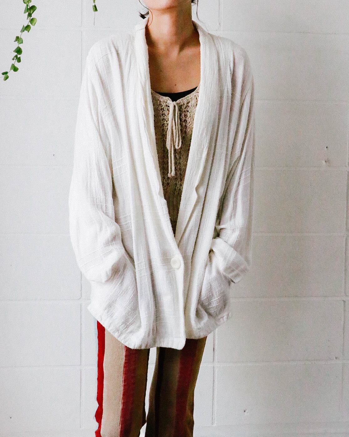 これからの季節にさっと羽織れるライトな着心地が魅力のホワイトジャケット