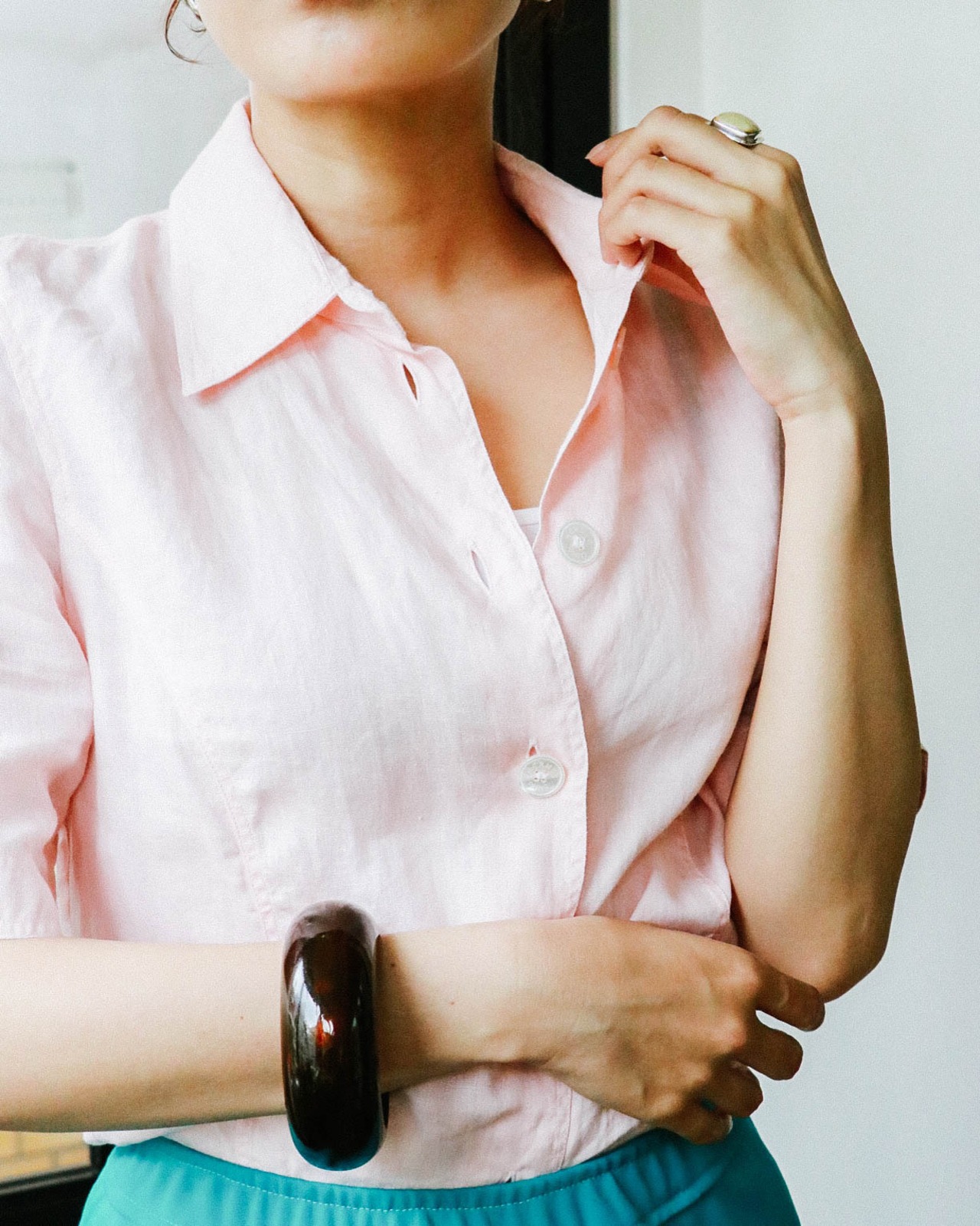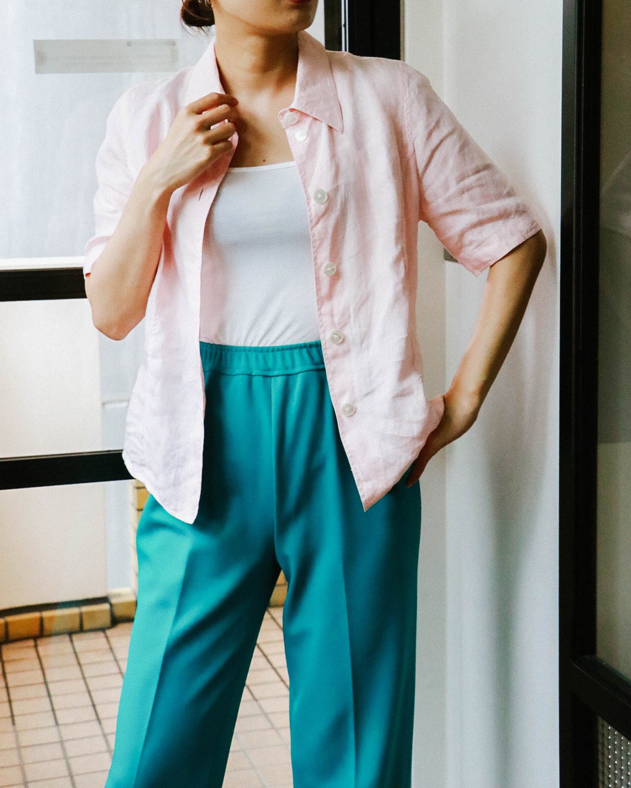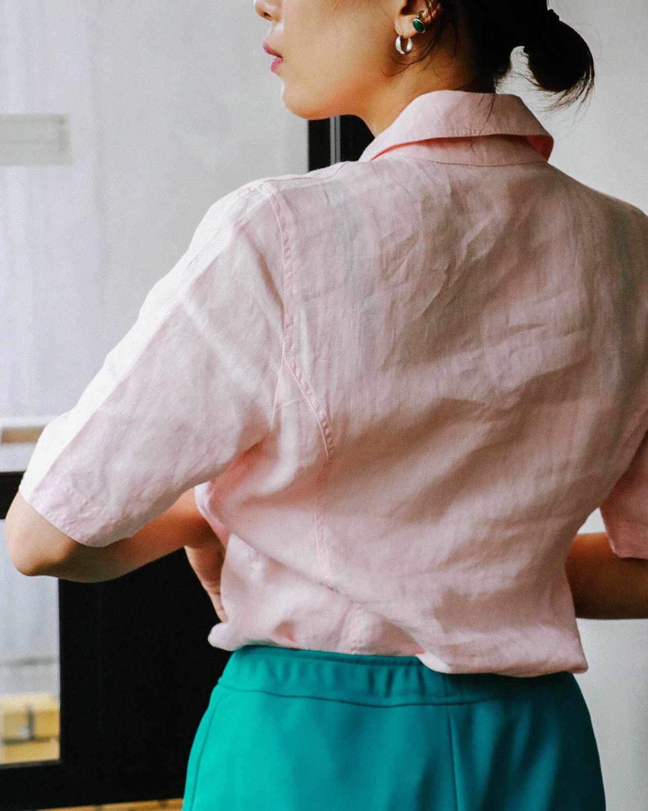 上質な麻素材で着心地がよく、日本人の肌色に合う柔らかなピンクカラーが顔色をパッと明るく魅せてくれます。