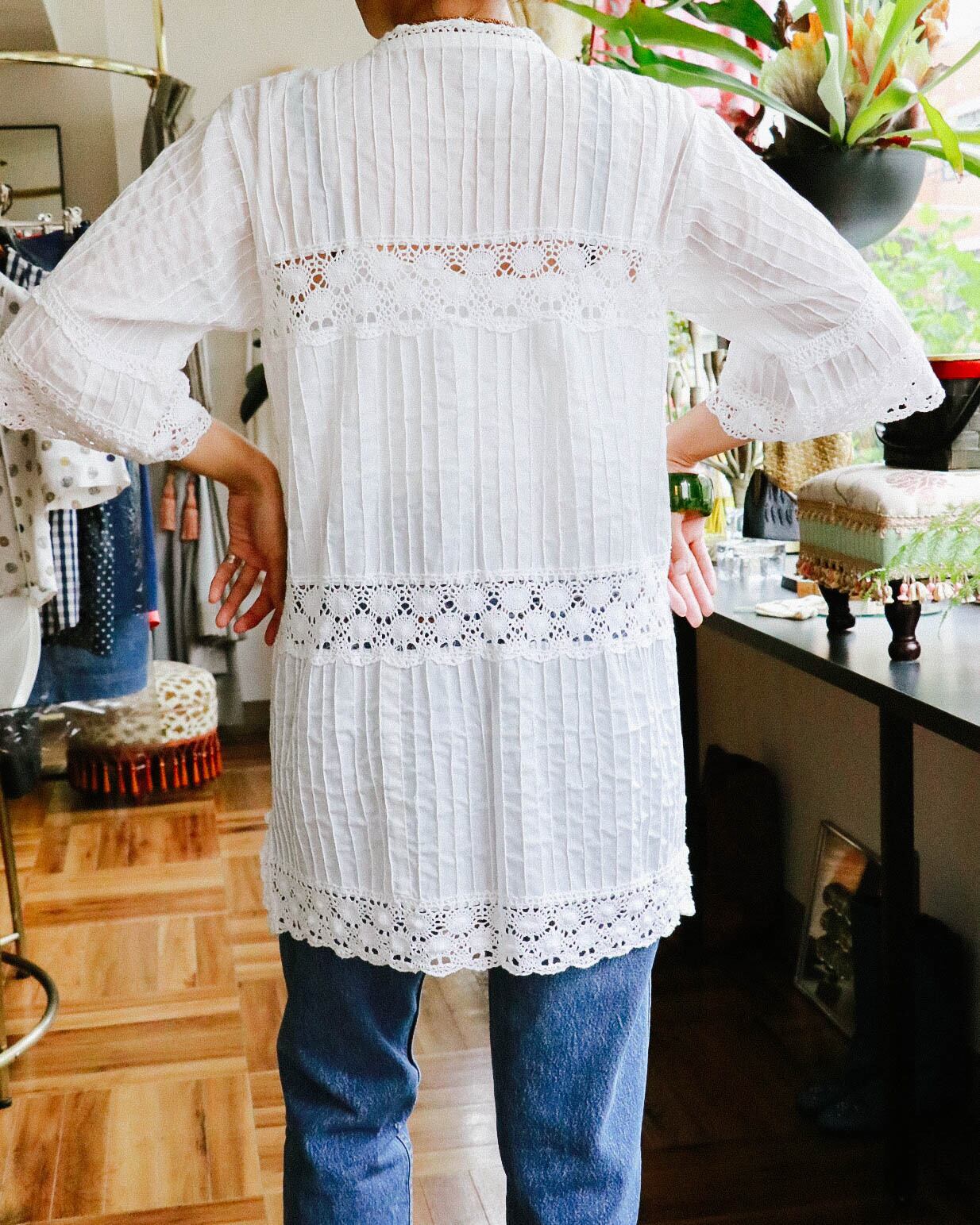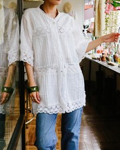 ホワイトカラーがシーズンムードを盛り上げる70'sのシャツブラウス。