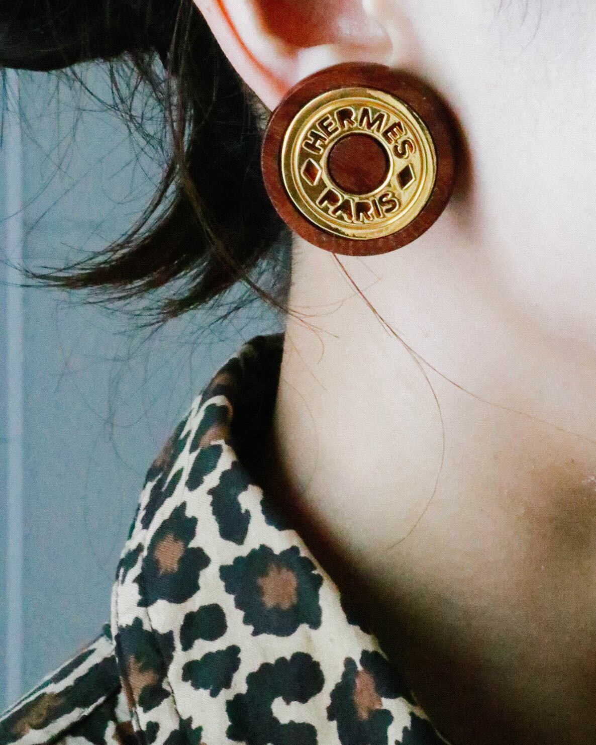 そんなエルメスから木造の大振りイヤリングのご紹介です。