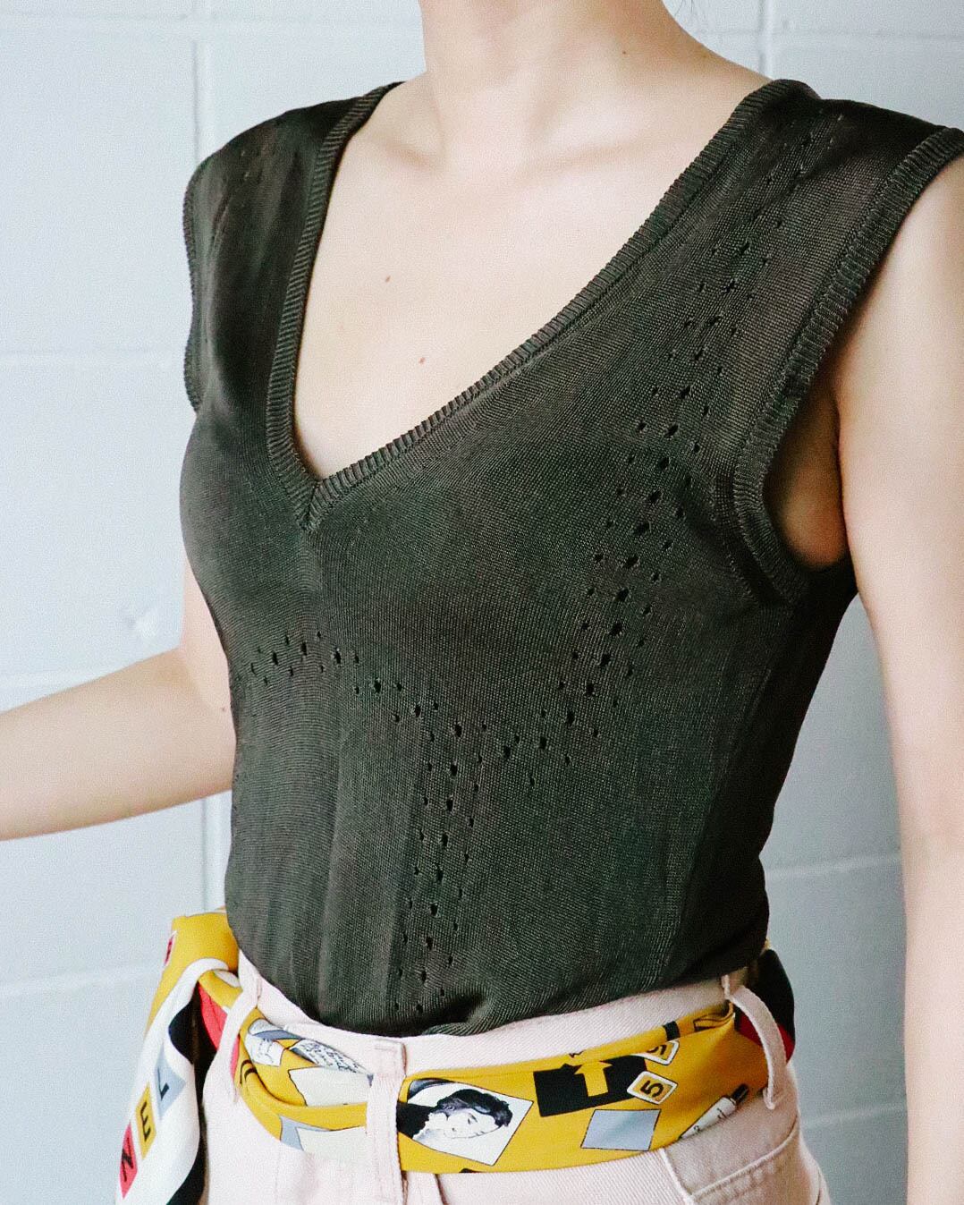 上品顔のこちらのサマーニットトップスは、Yves Saint Laurent rive gaucheのもの。