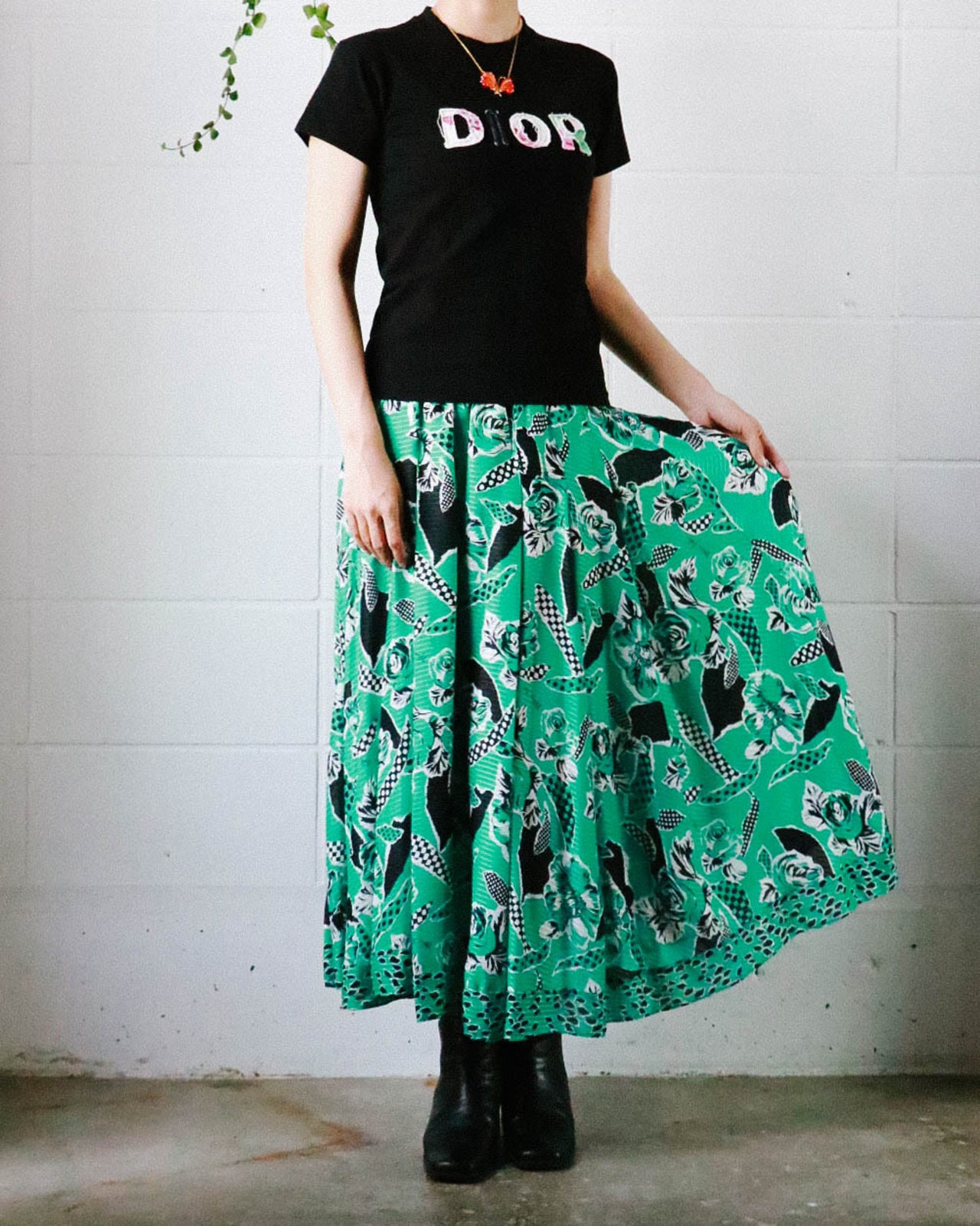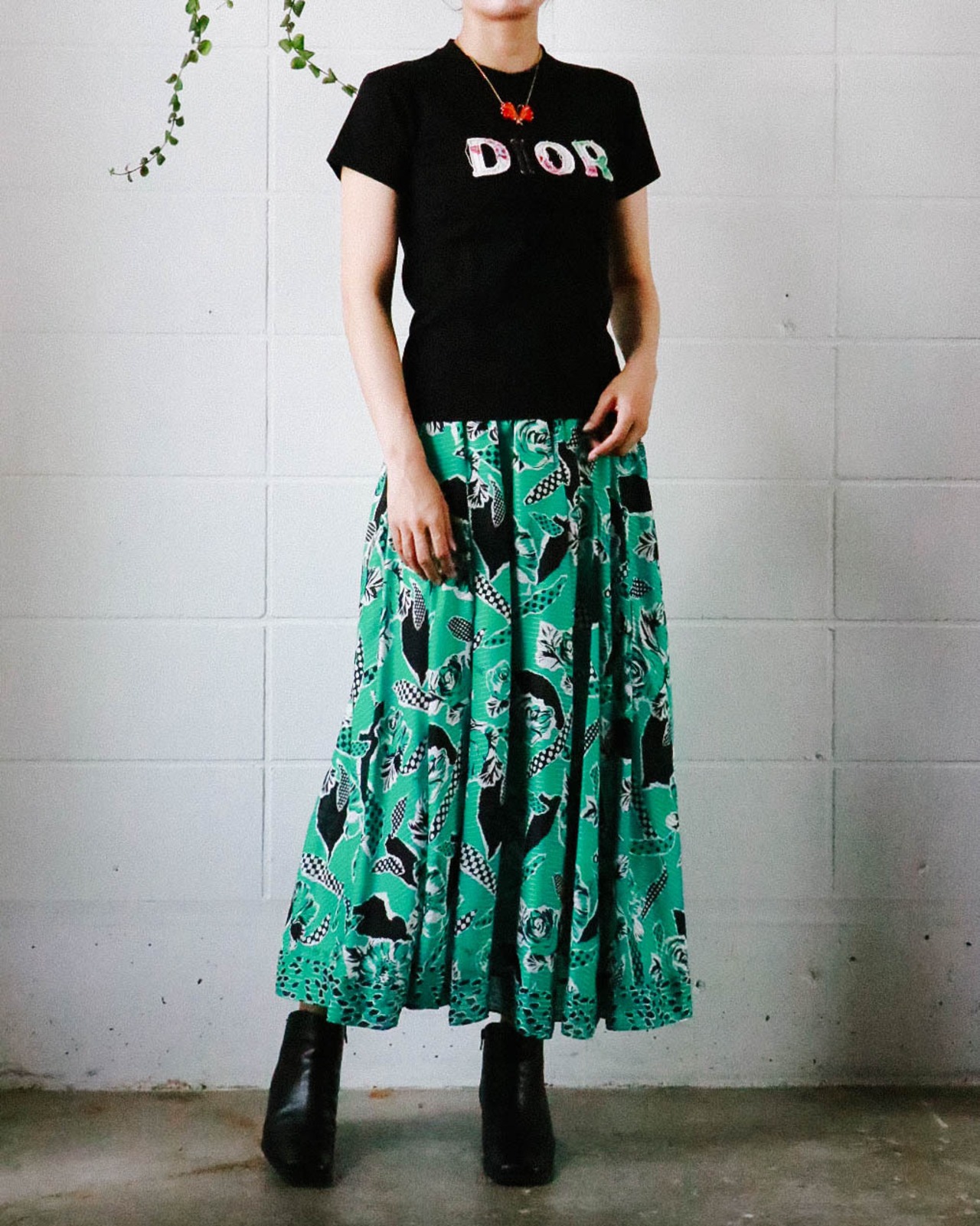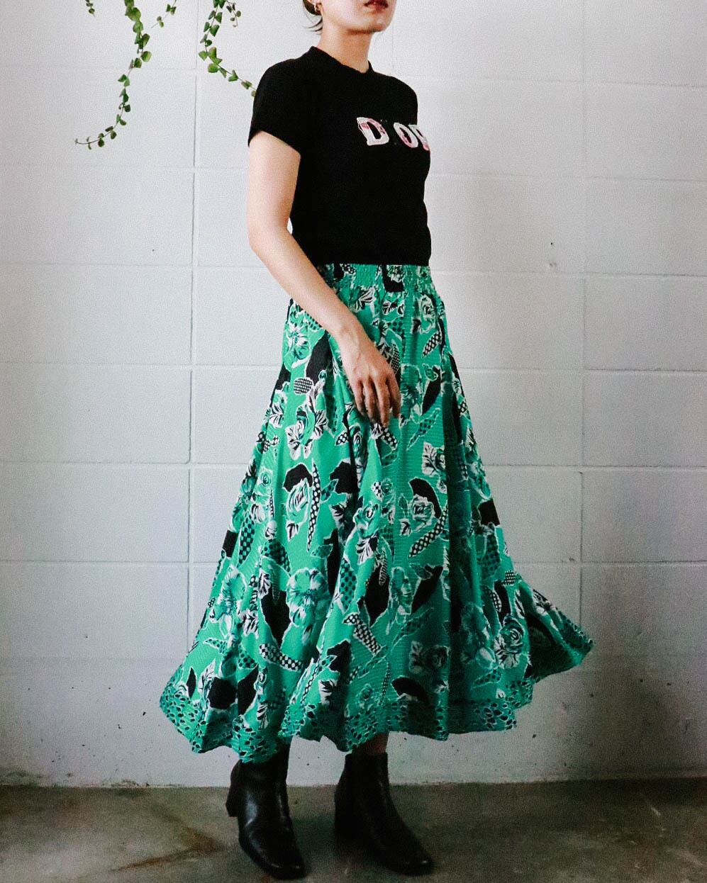 空気をふんだんに纏ったようなエアリー感のある着心地と鮮やかなグリーンとフローラルデザインがシーズンモードへ誘う。