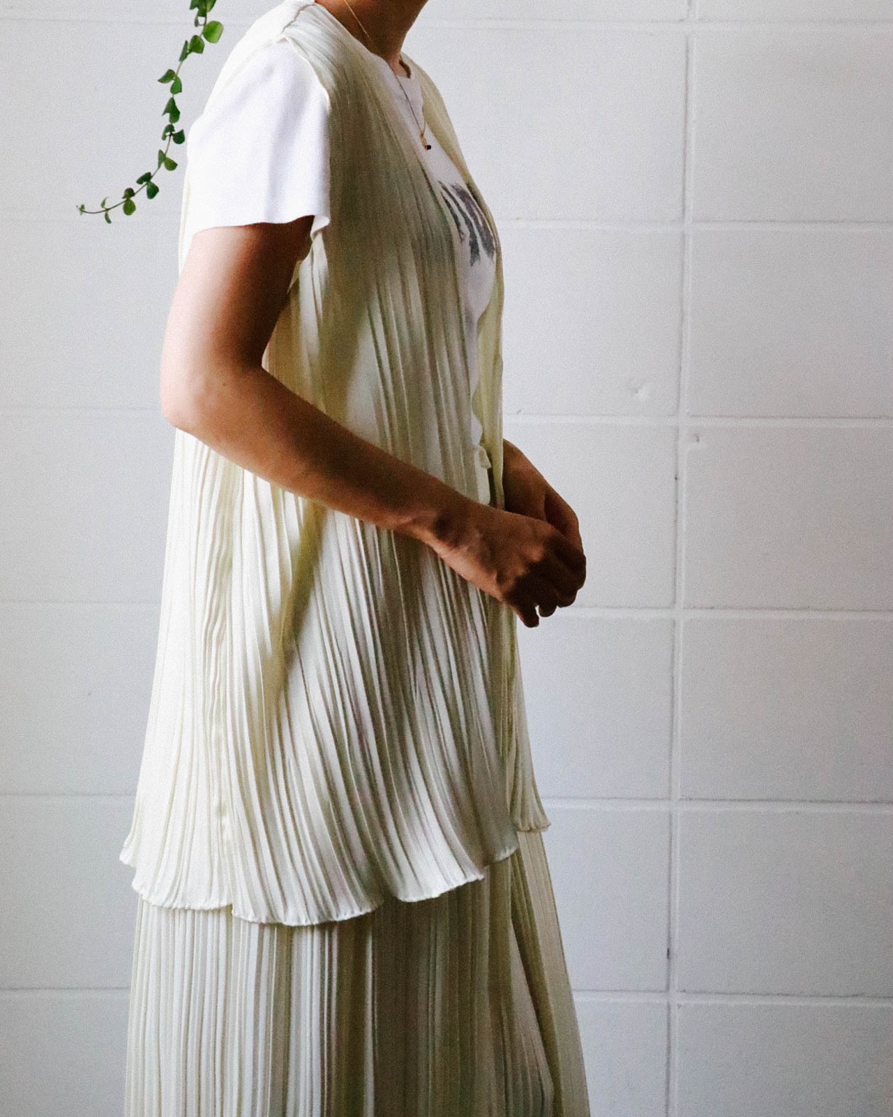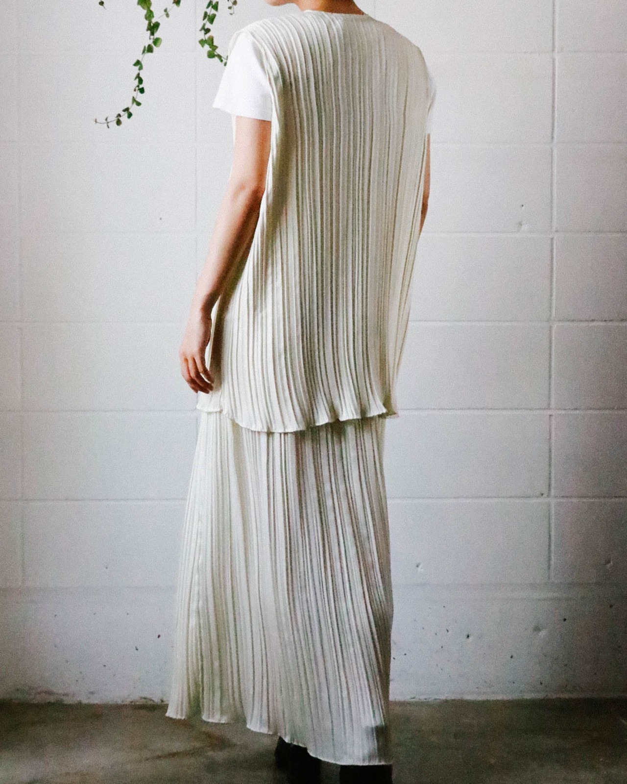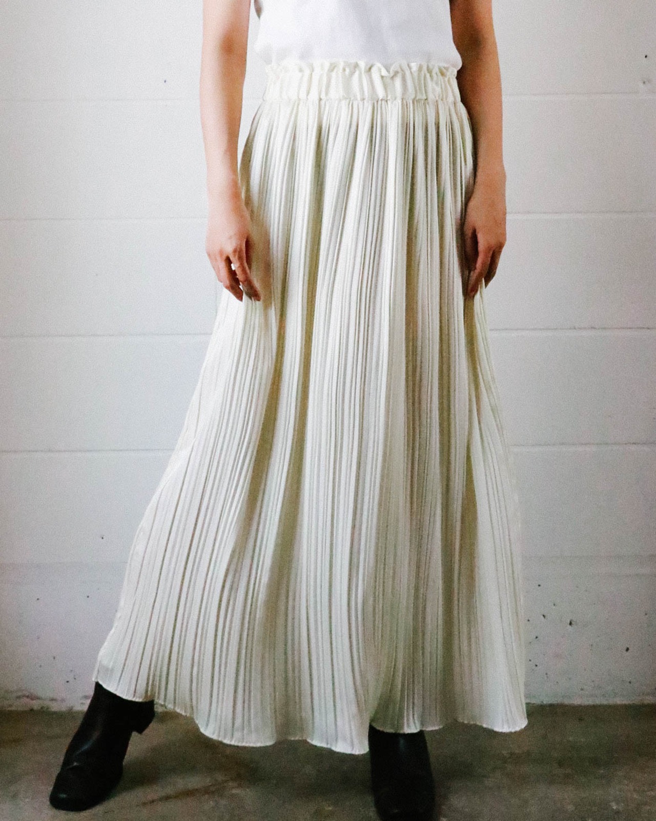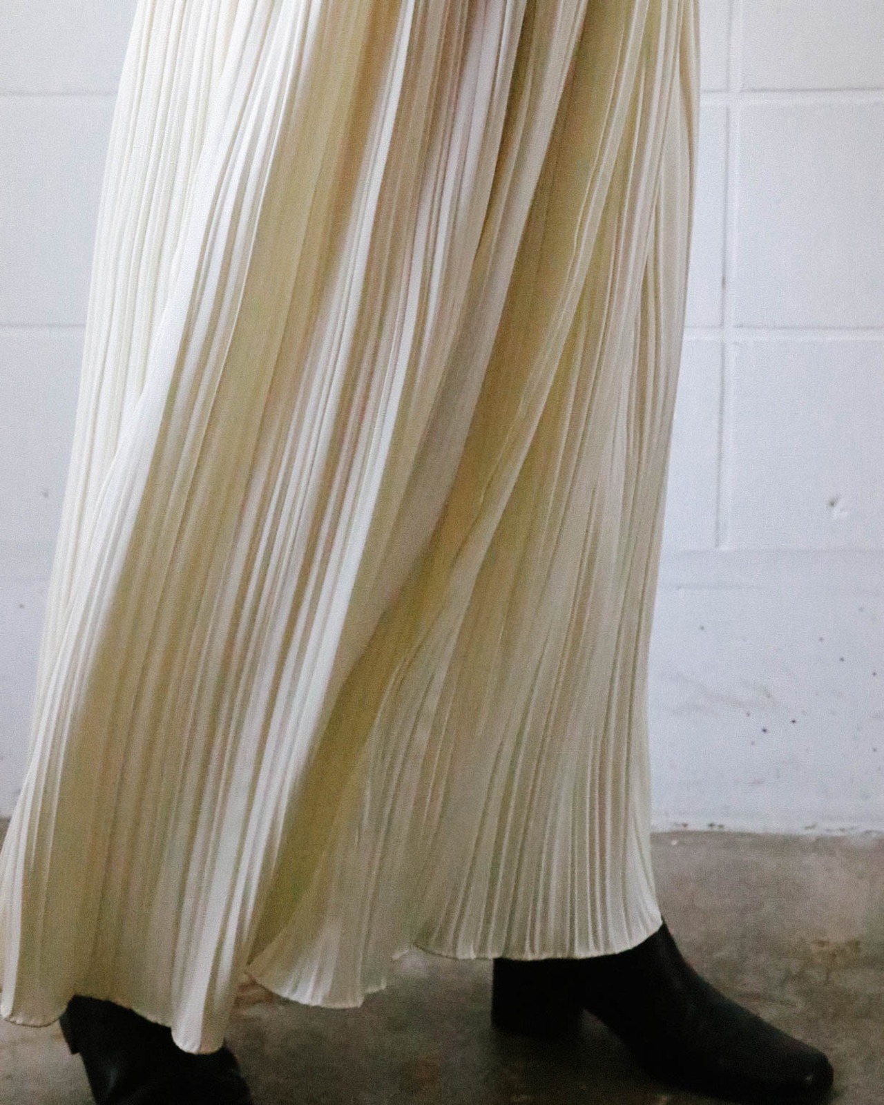 プリーツデザインがリズムを添えて、大人フェミニンな印象。
