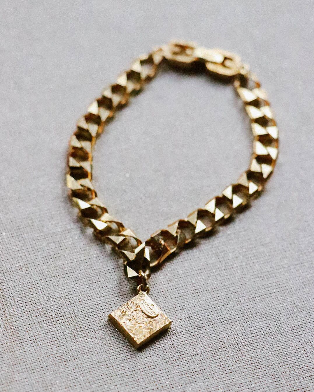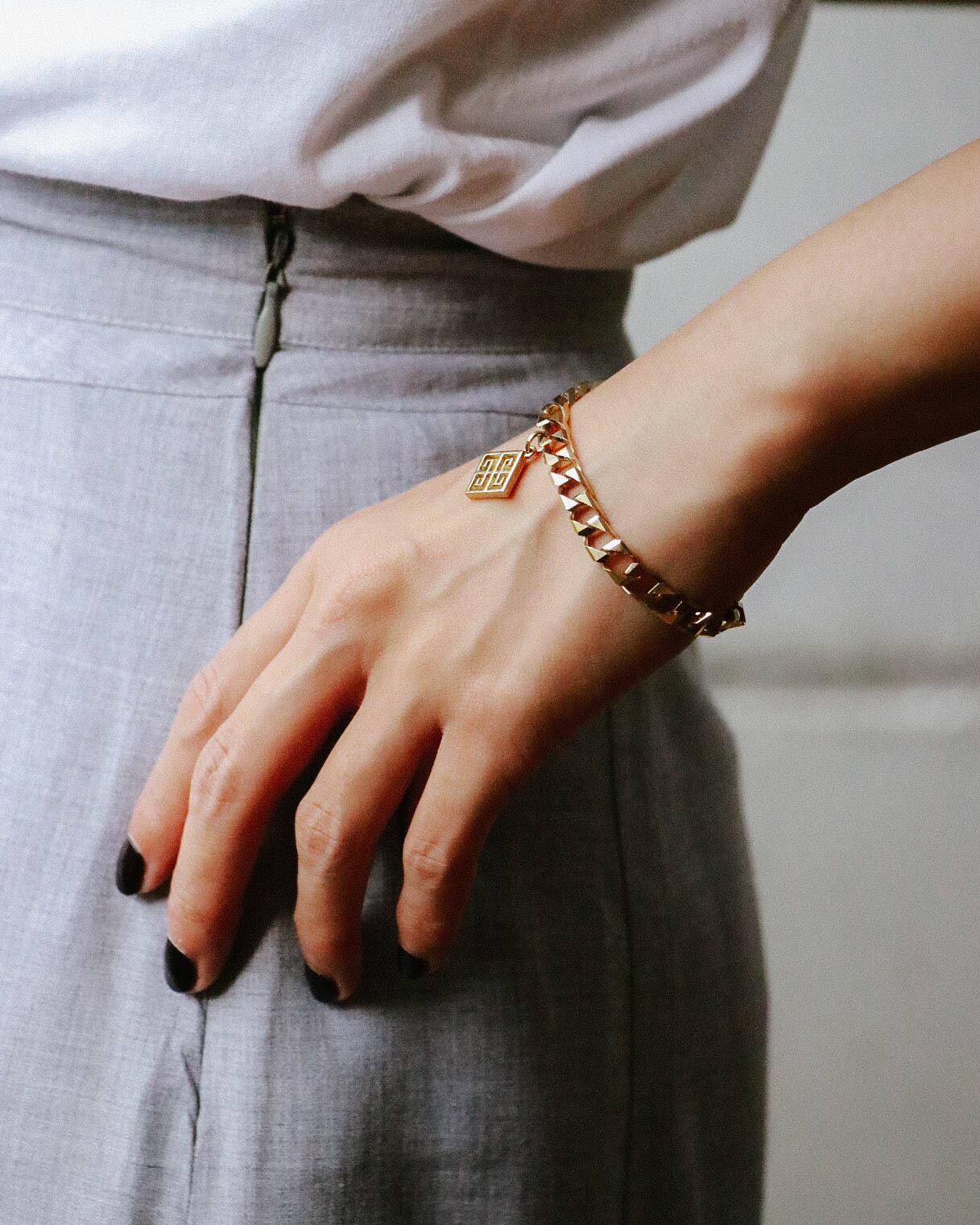 ポイントになるチャームと厚みのある喜平チェーンタイプで手元にボリュームをつけてみてはいかがでしょうか。