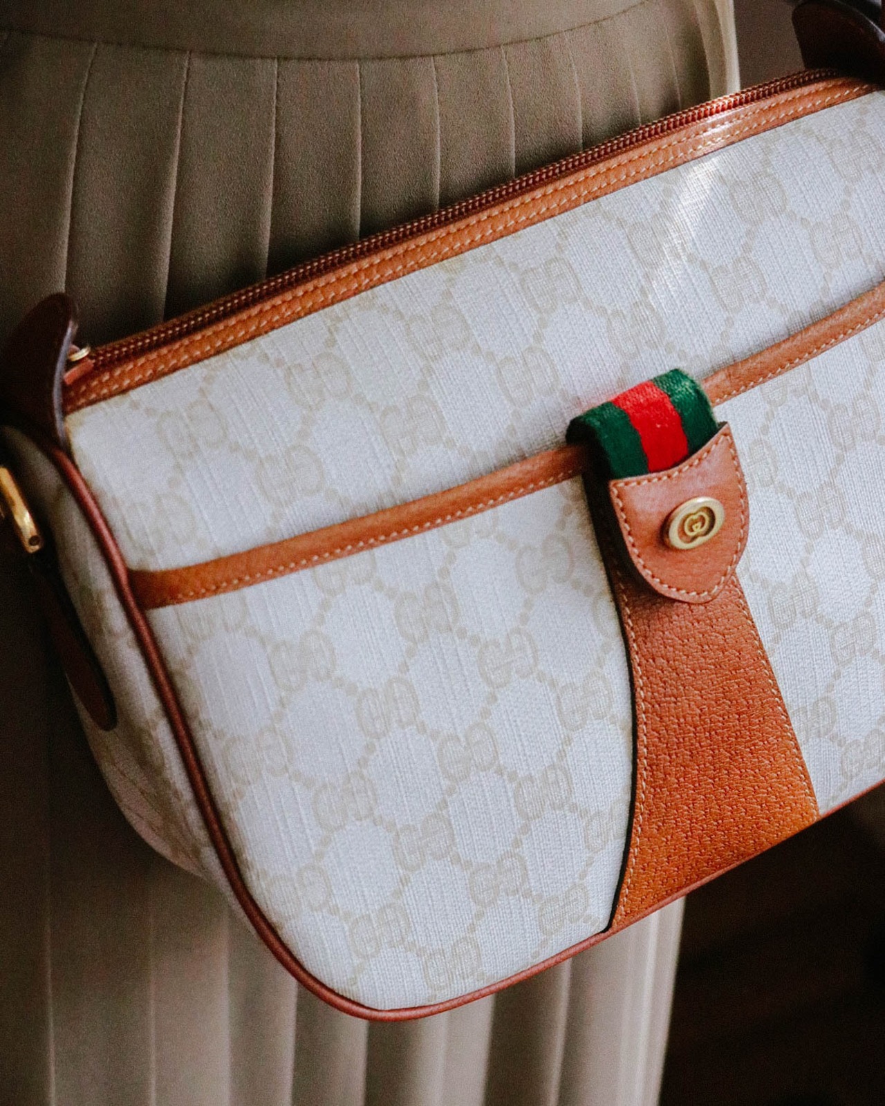 珍しいホワイトカラーのモノグラムに、お馴染みのシェリーラインが上品なアクセント。