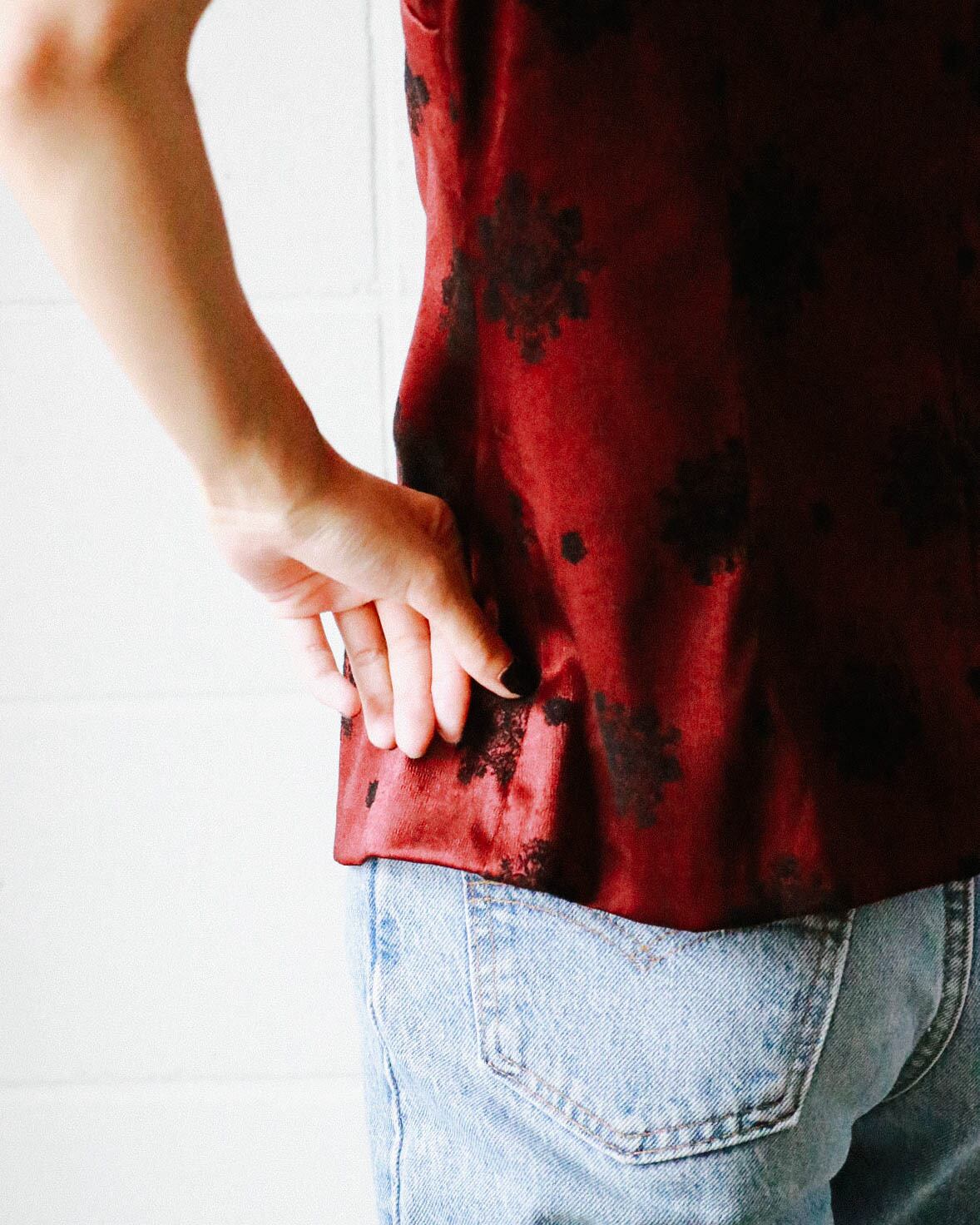 こちらは、深みと奥行きを感じるボルドーに浮かび上がる花模様が美しい一枚。