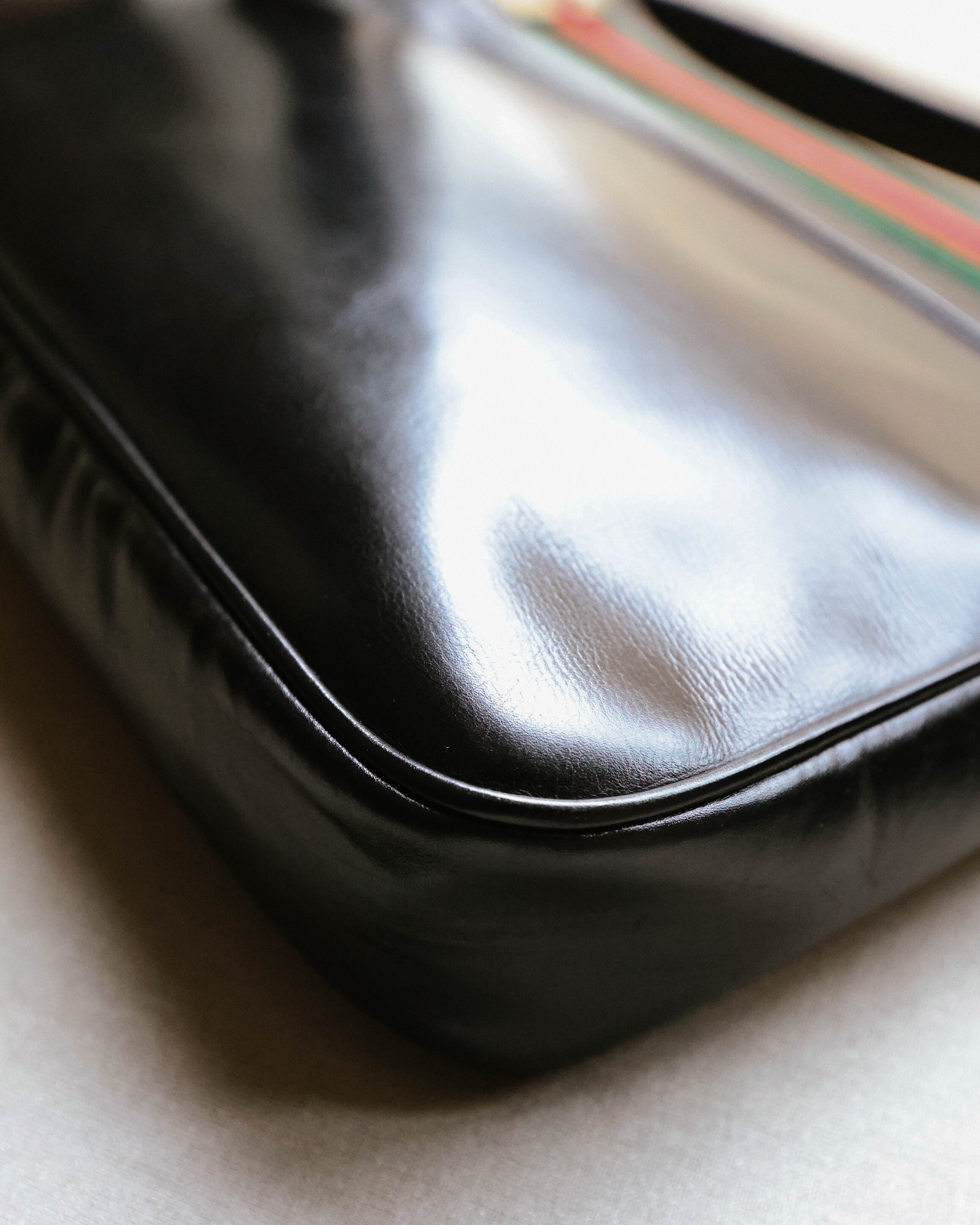 エレガントが際立つ素材にグッチの象徴でもあるシェリーラインの赤と緑が目立ちます。