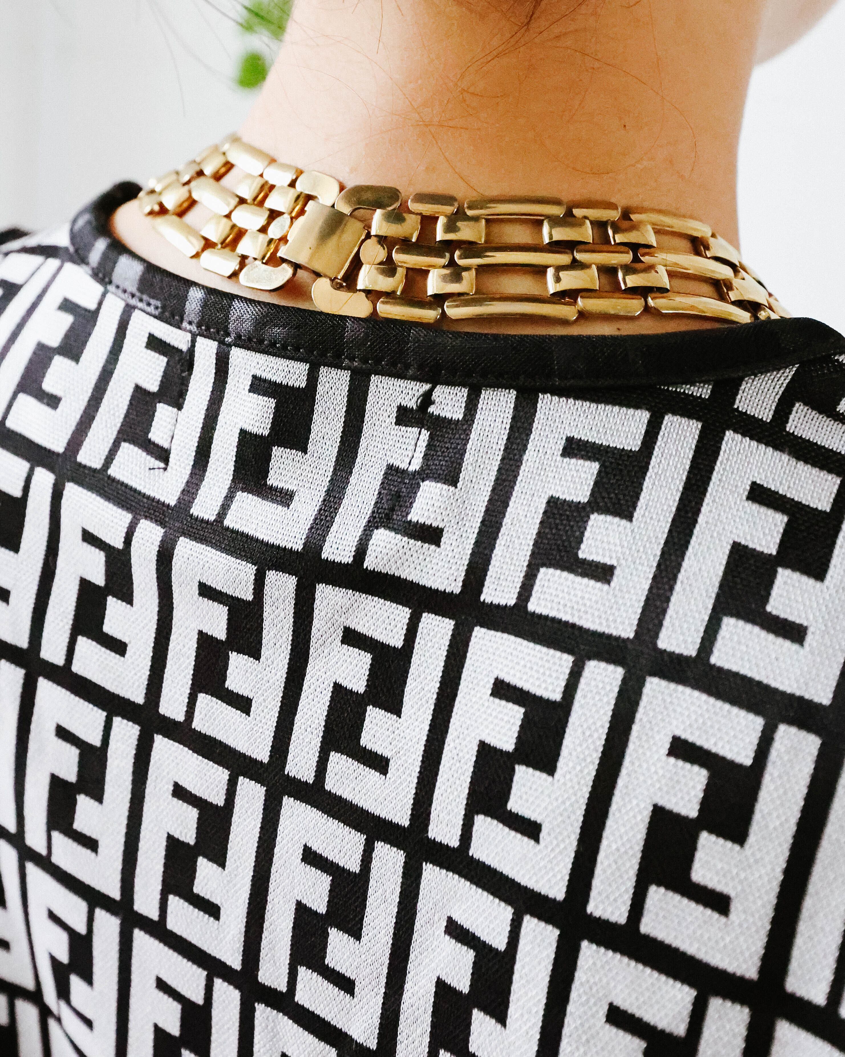 華奢なネックレスもいいけれど、露出の増えるこの時期はそれだと物足りない!と感じる人も多いのでは。そんな方にオススメなボリュームたっぷりのこちらのネックレスは80年代ごろのもの。幅広デザインにほどよい長さで首回りを大胆に演出します。