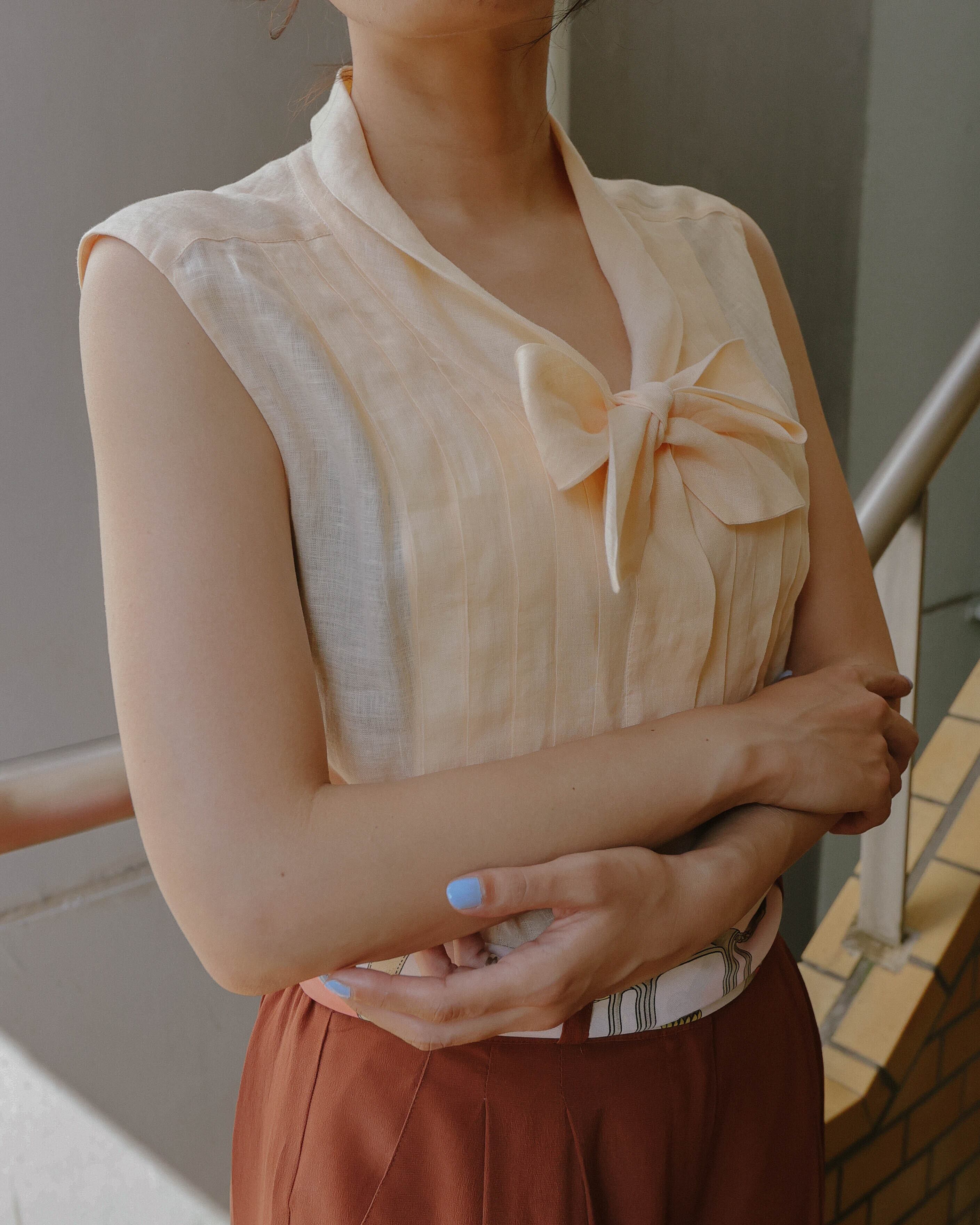 CHANEL salmon pink sleeve less blouse