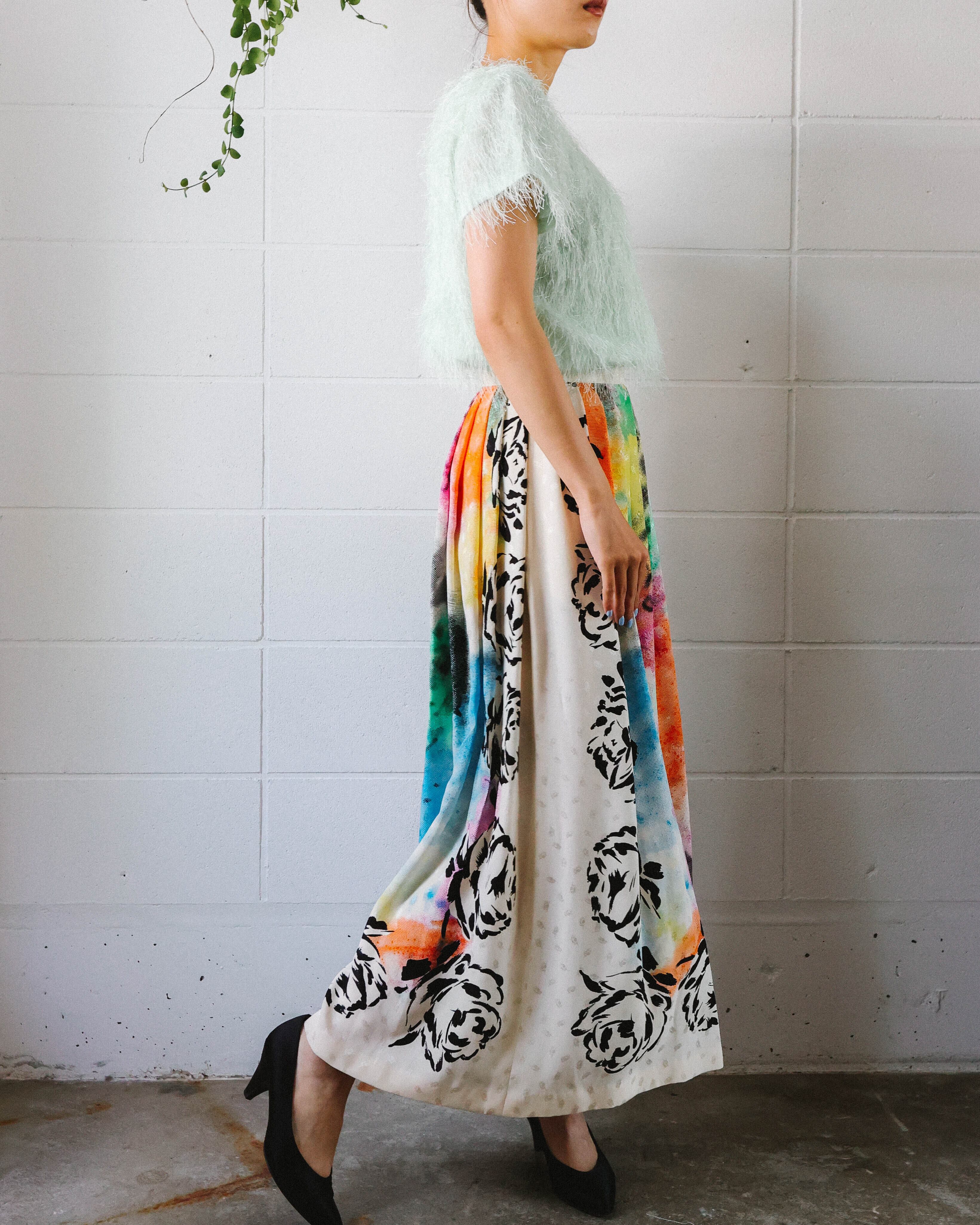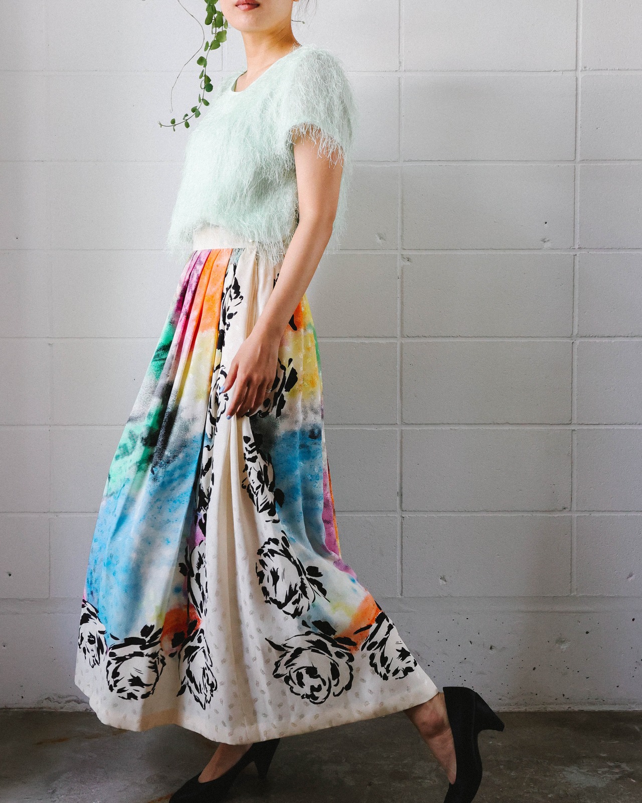美しい色合いのプリーツスカートはウンガロのヴィンテージ。
