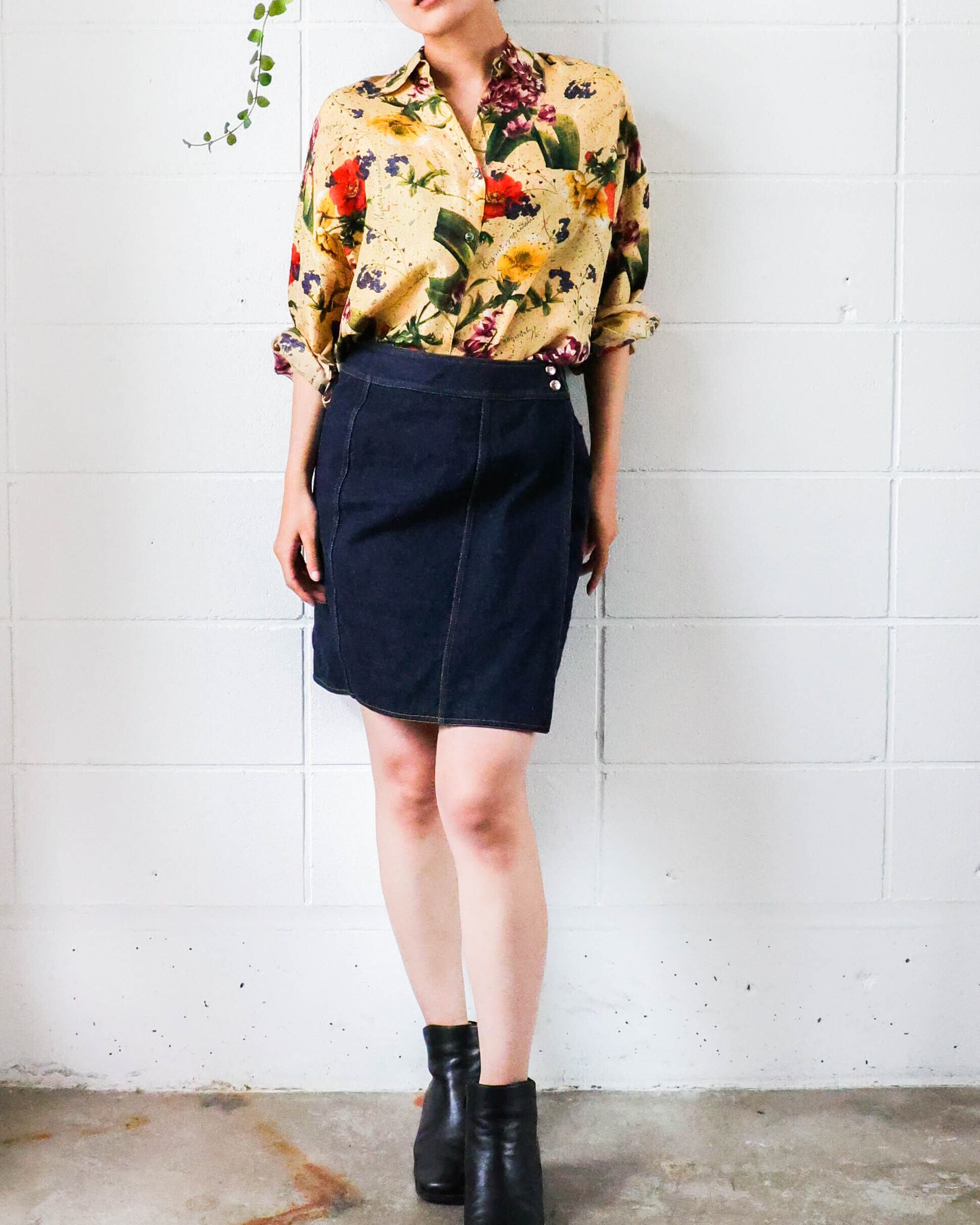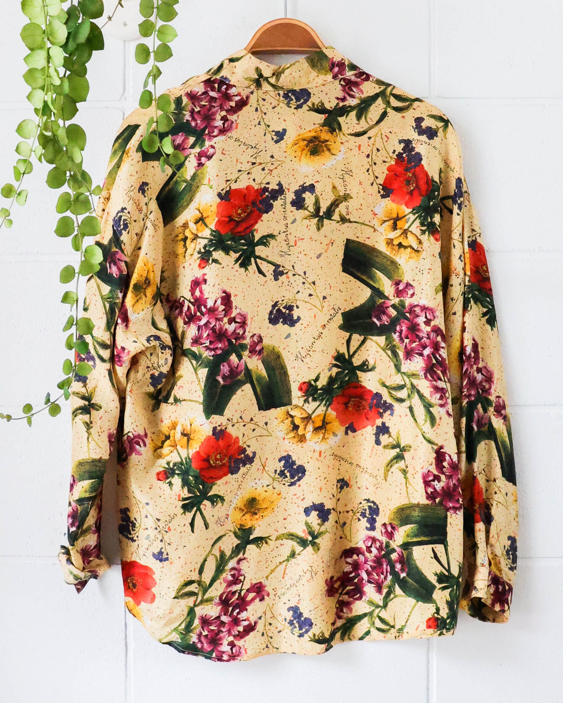 大柄の水彩画のようなタッチで落ち着いた色合いなので花柄と言っても甘くならず大人な印象。