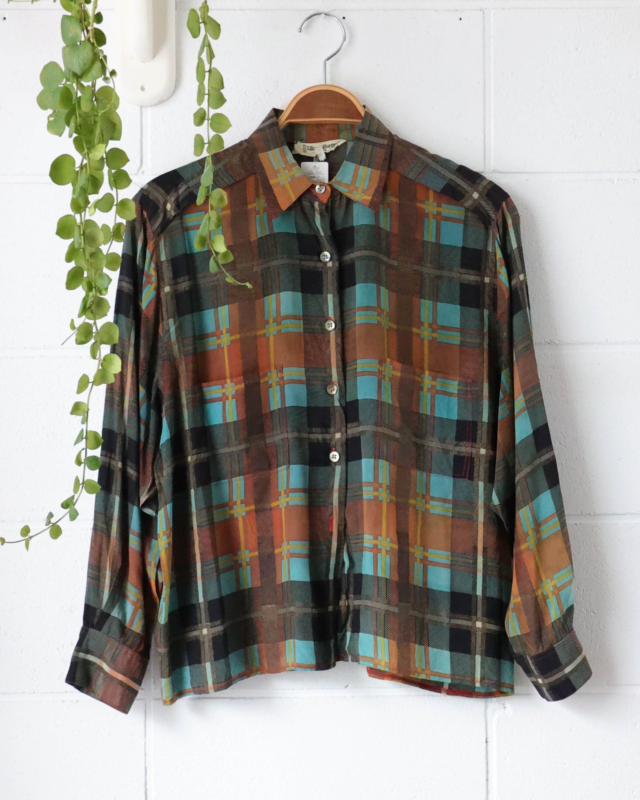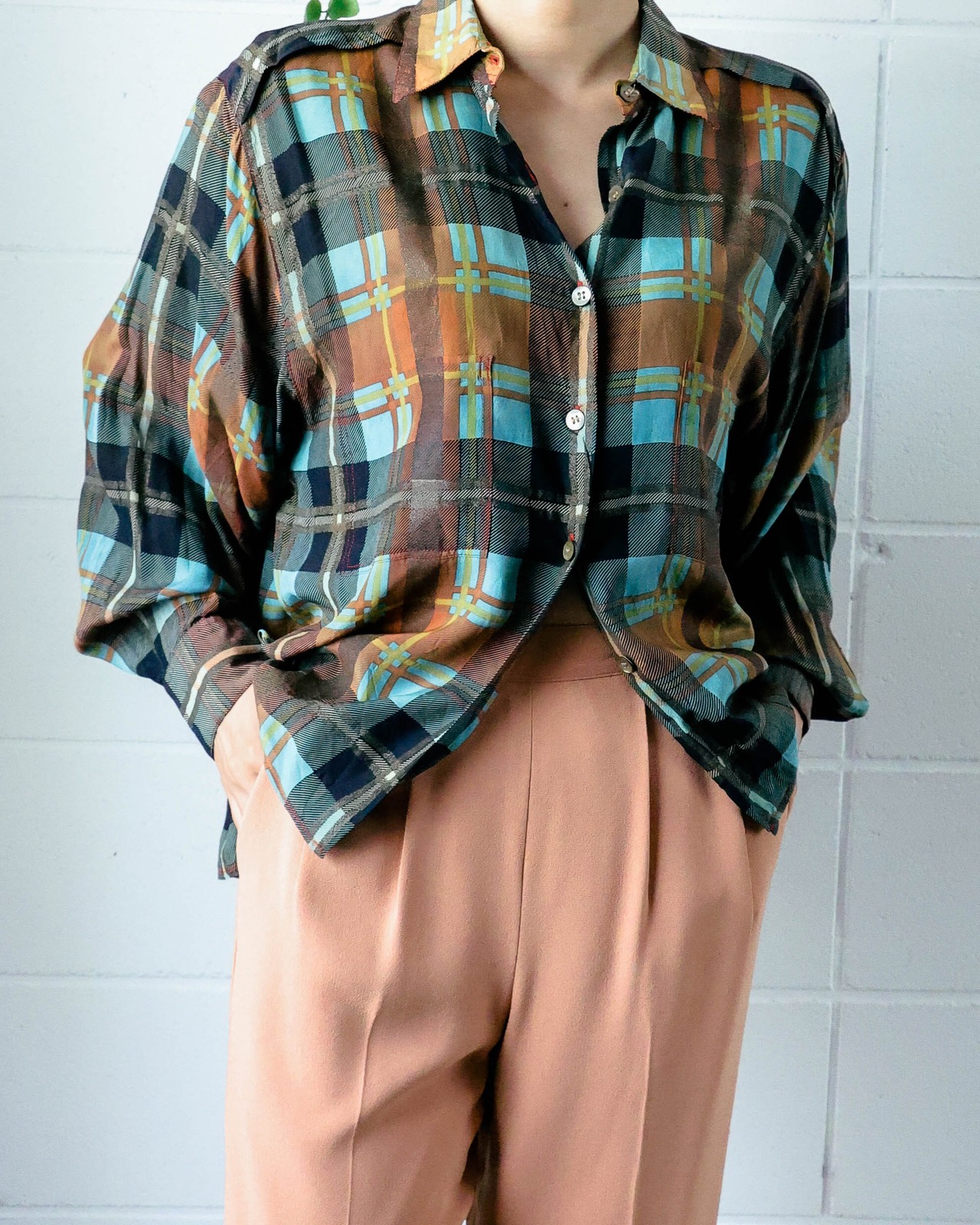 check silk blouse