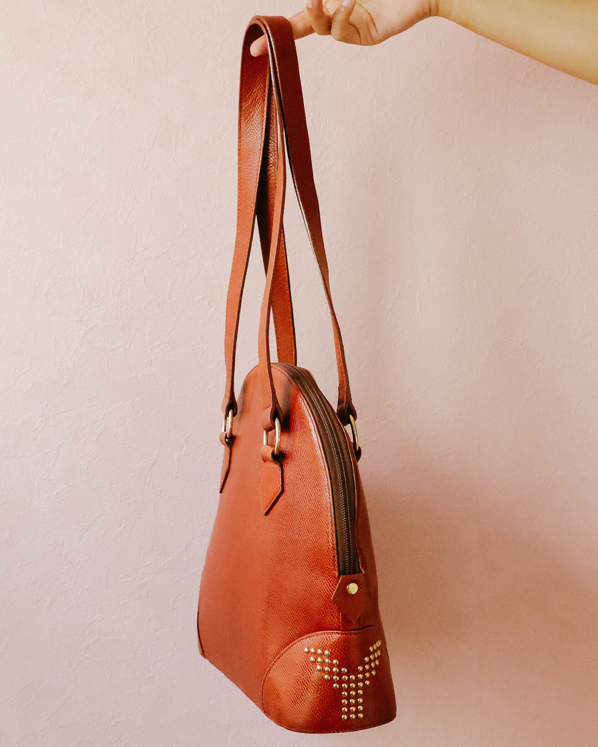 サイドに付いたYマークのゴールドスタッズがエッジを利かせたデザインで、クラシックスタイルはもちろんカジュアルスタイルとも相性抜群◎収納力のある優秀なサイズの上に、ダブルになった持ち手が長く肩にもすんなりかけられます。またファスナー口で安心感があり、オフィスや小旅行などにも使え、永年使いたいバッグです。