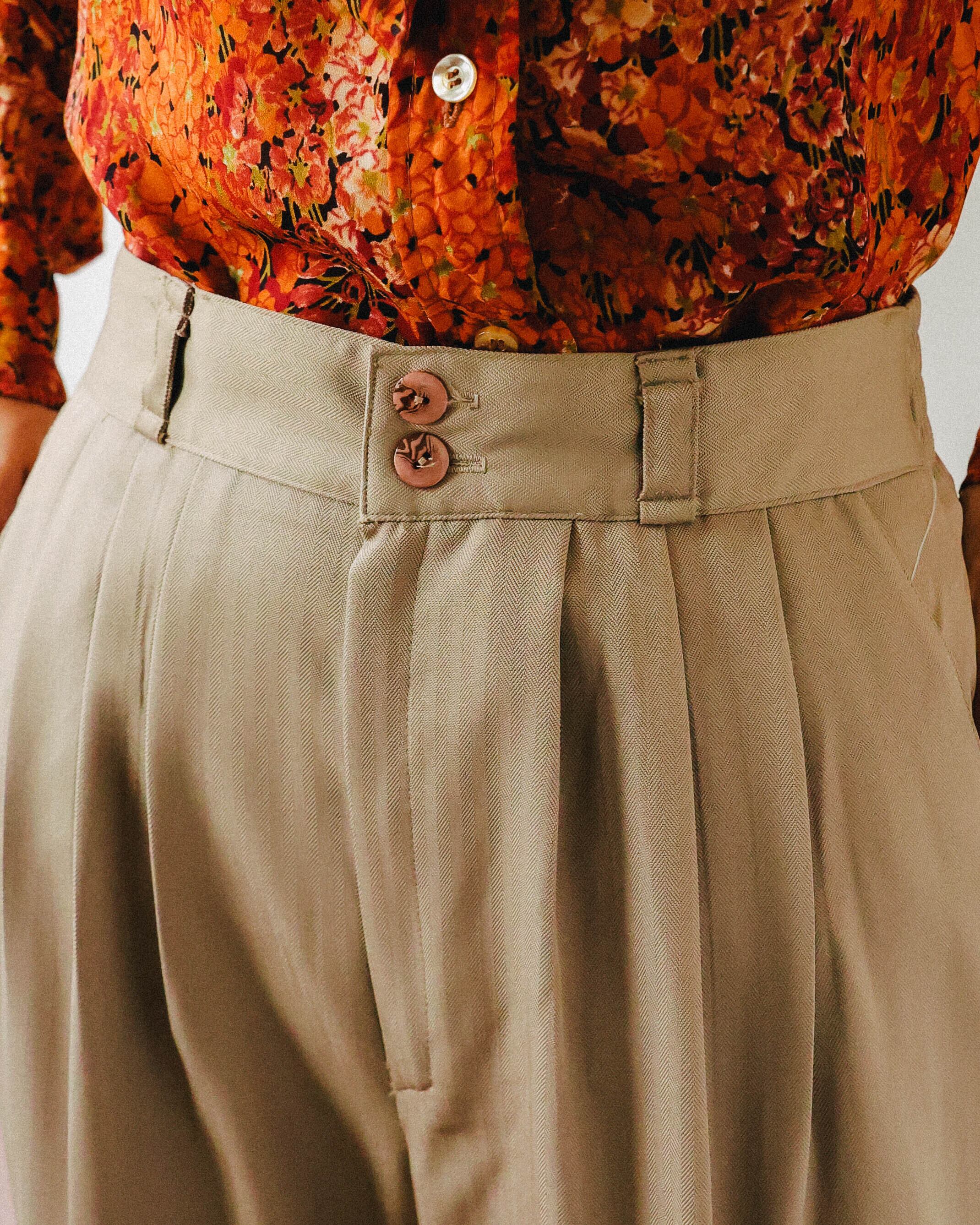 こちらは、合わせやすいベージュカラーが嬉しいテーパードパンツ。