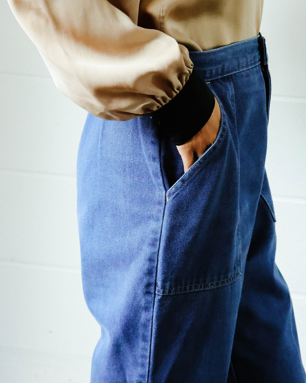 大きなポケットとステッチがポイント。