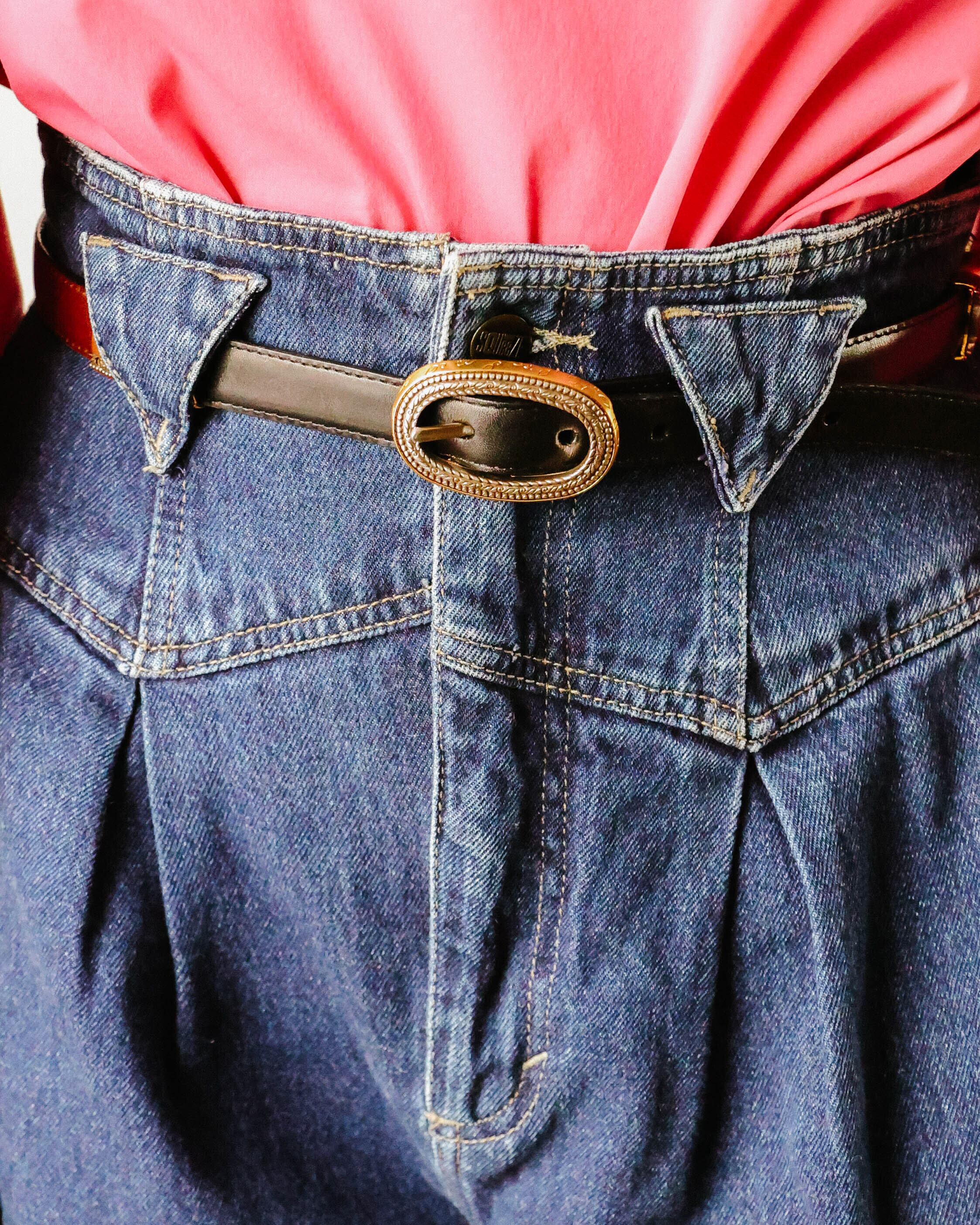コーディネートの印象を変えてくれるベルトは何本も揃えておきたいところを、この1つで2本の役割をはたしてくれます。