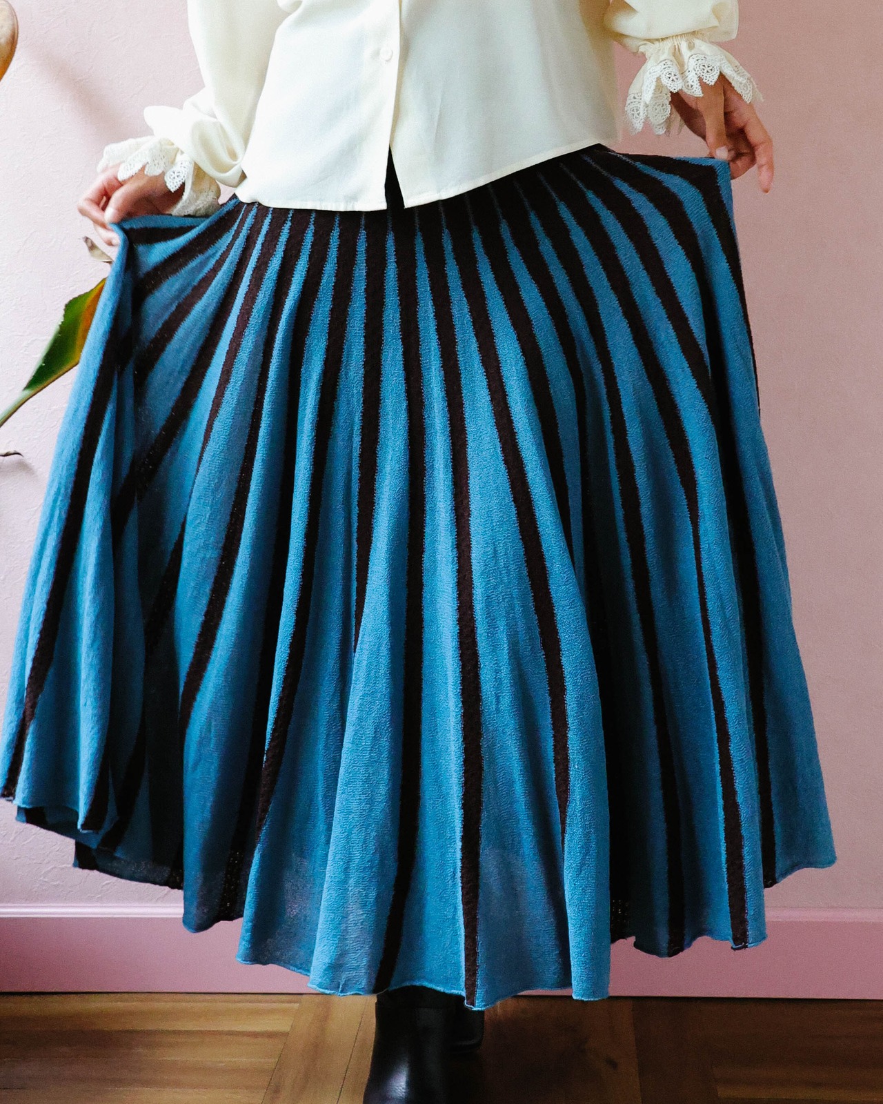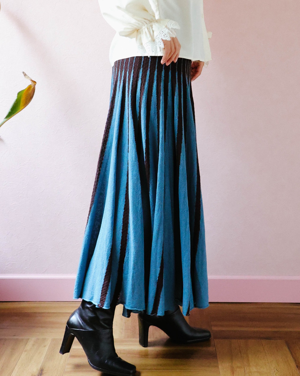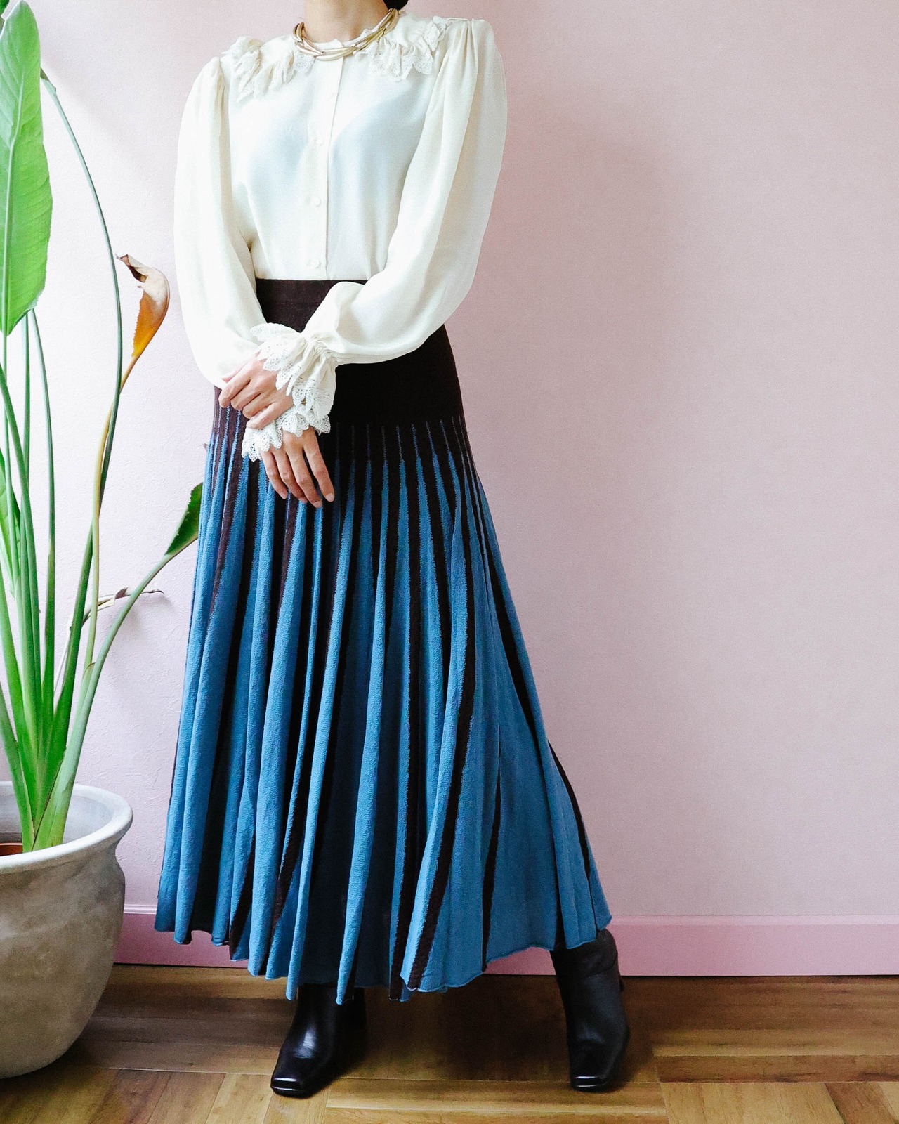 ブラウンとライトブルーの切り替えが視覚効果を生み出し、プリーツ風にみえるのが面白いデザイン。
