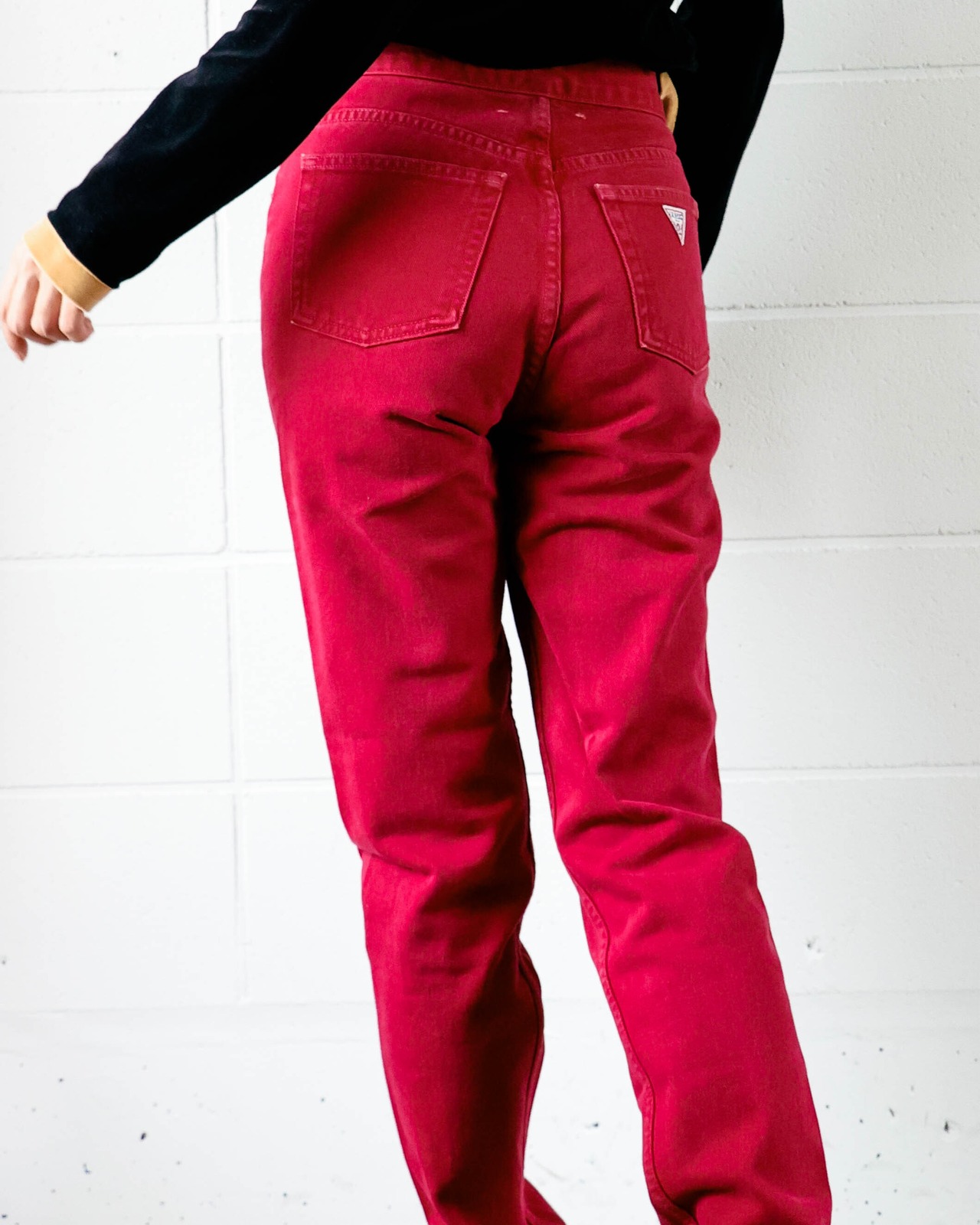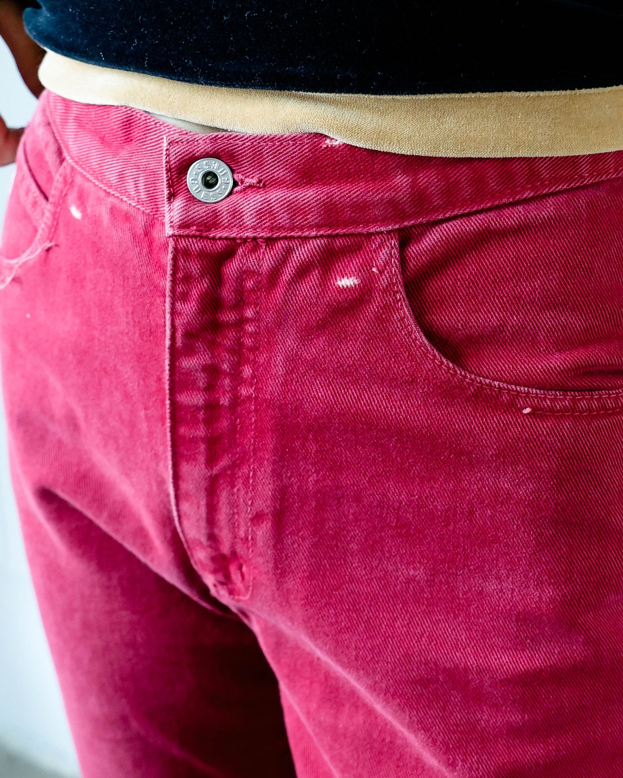 店頭でも人気の高いカラーデニム。こちらは、Guessのもの。