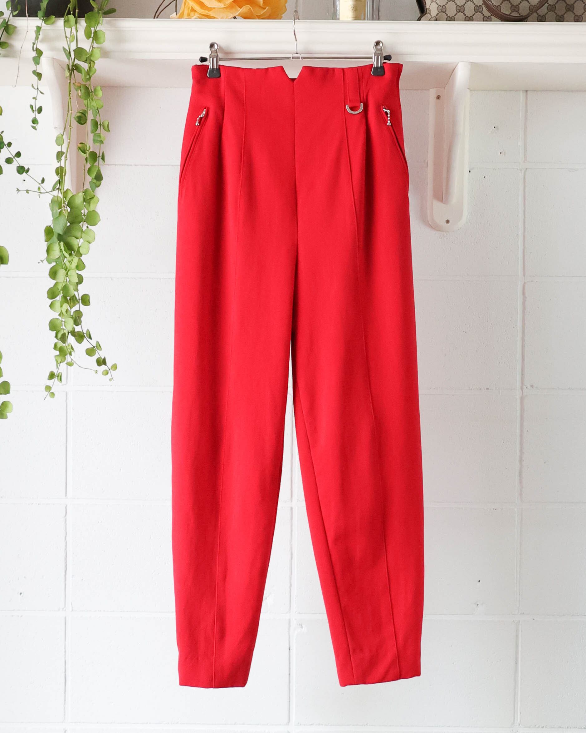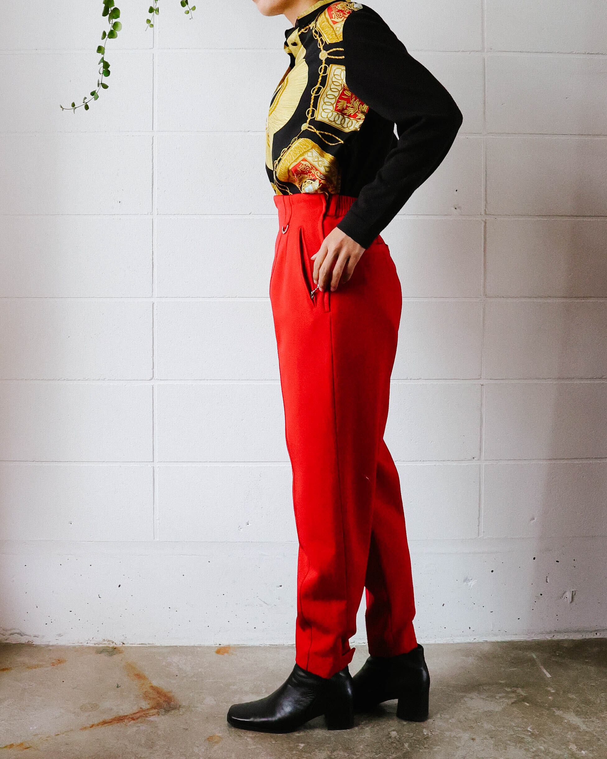 クローゼットにカラーパンツ揃えたい方にオススメのハイウエストレッドパンツは、クリスチャン・ディオールのスポーツラインのもの。鮮やかなレッドは身に纏うだけで気分の高揚を感じ、暗くなりがちな秋冬コーデが一瞬で華やかになります。カジュアルからフェミニンスタイルまでお好みのトップスに合わせてコーディネートを楽しめます。