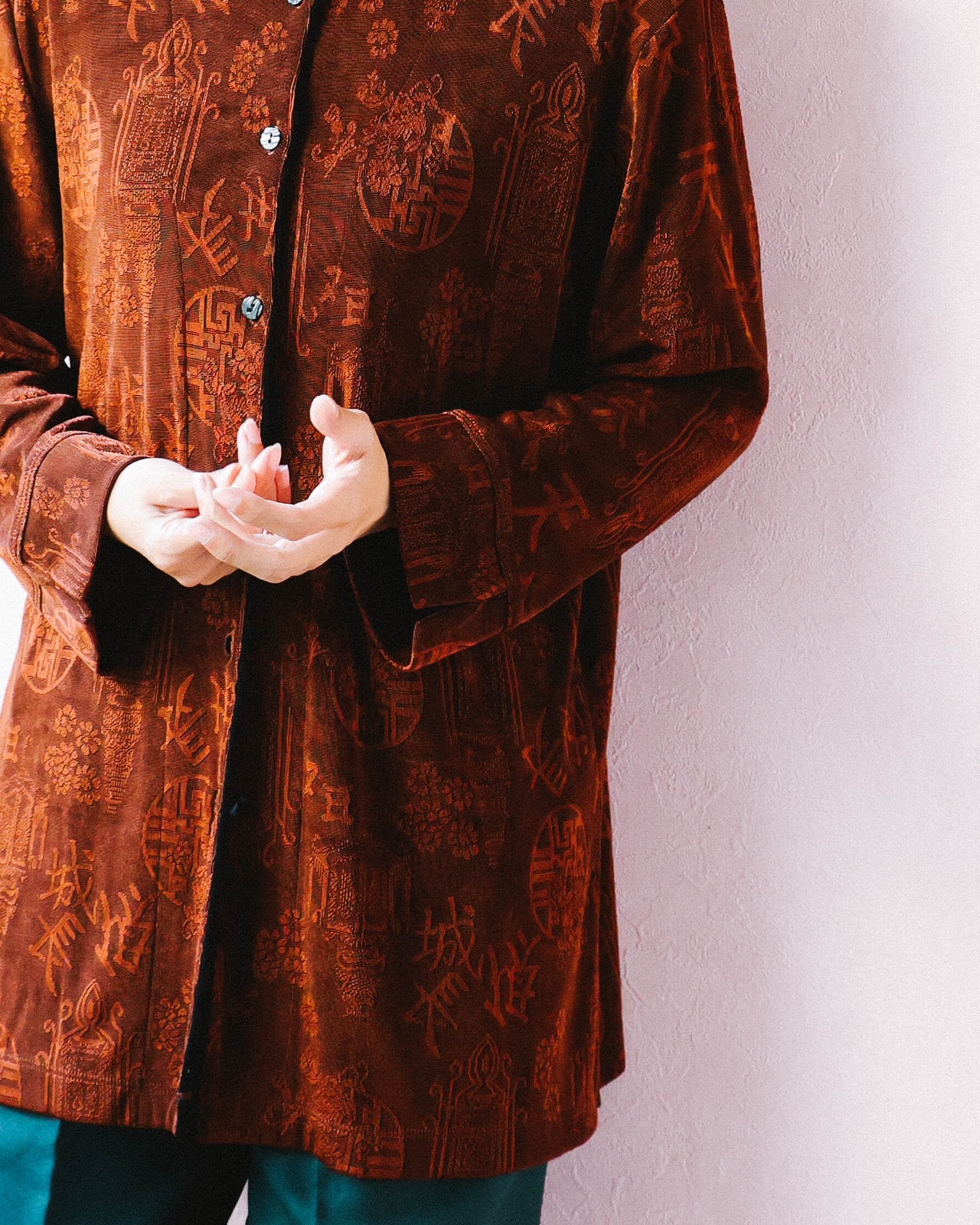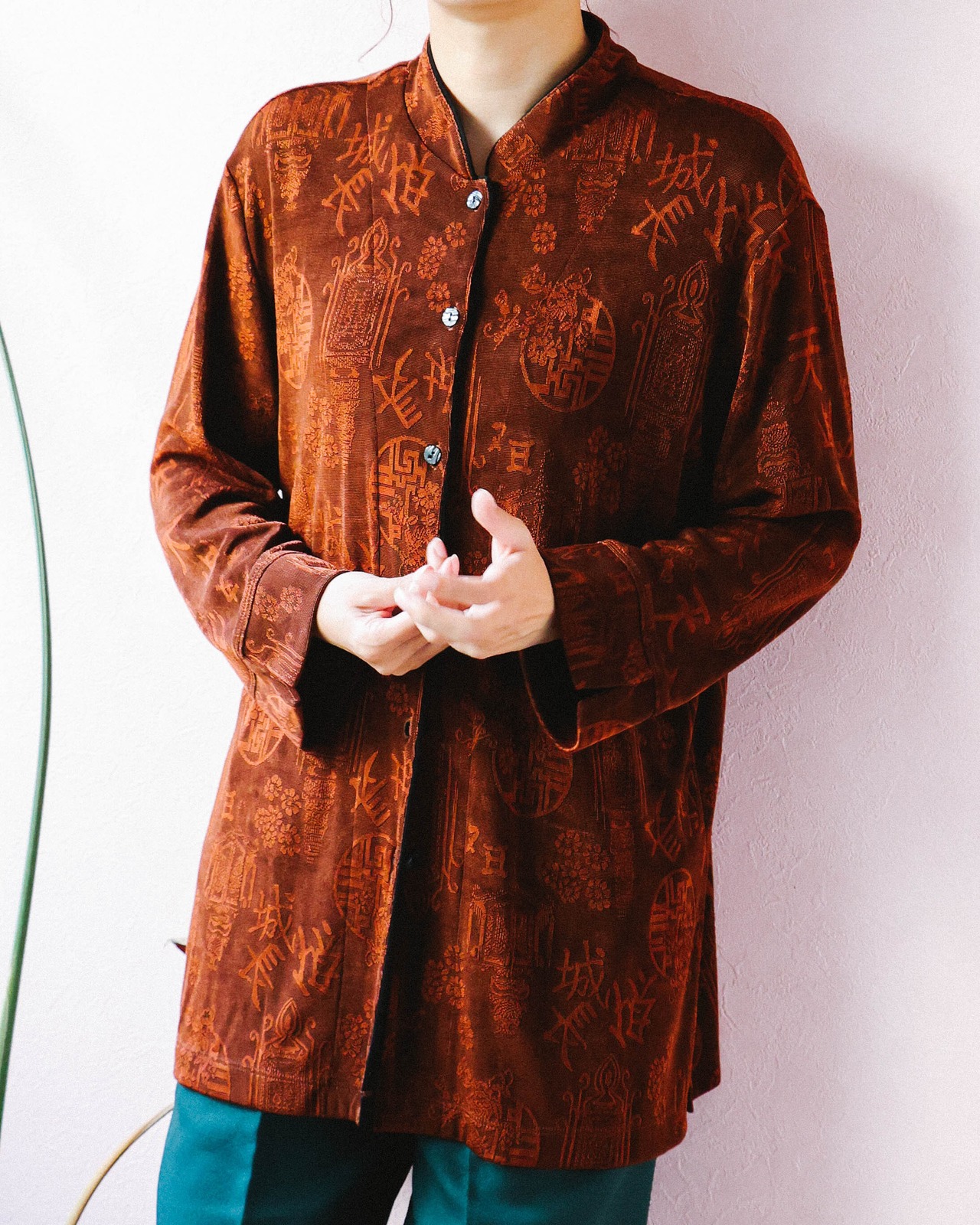 オリエンタルムード漂うチャイナ風トップスで、どんなボトムズとも相性がよくシャツとしても軽い羽織としても年中大活躍します。