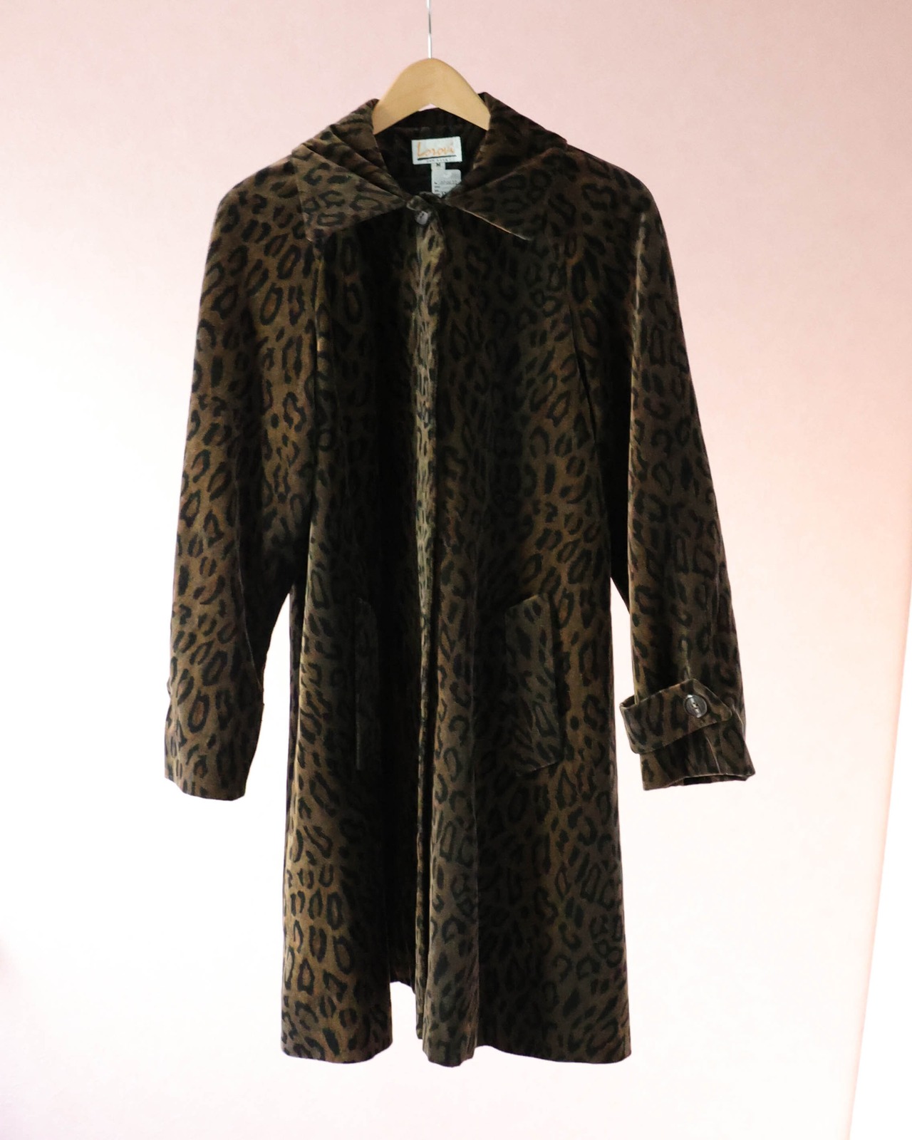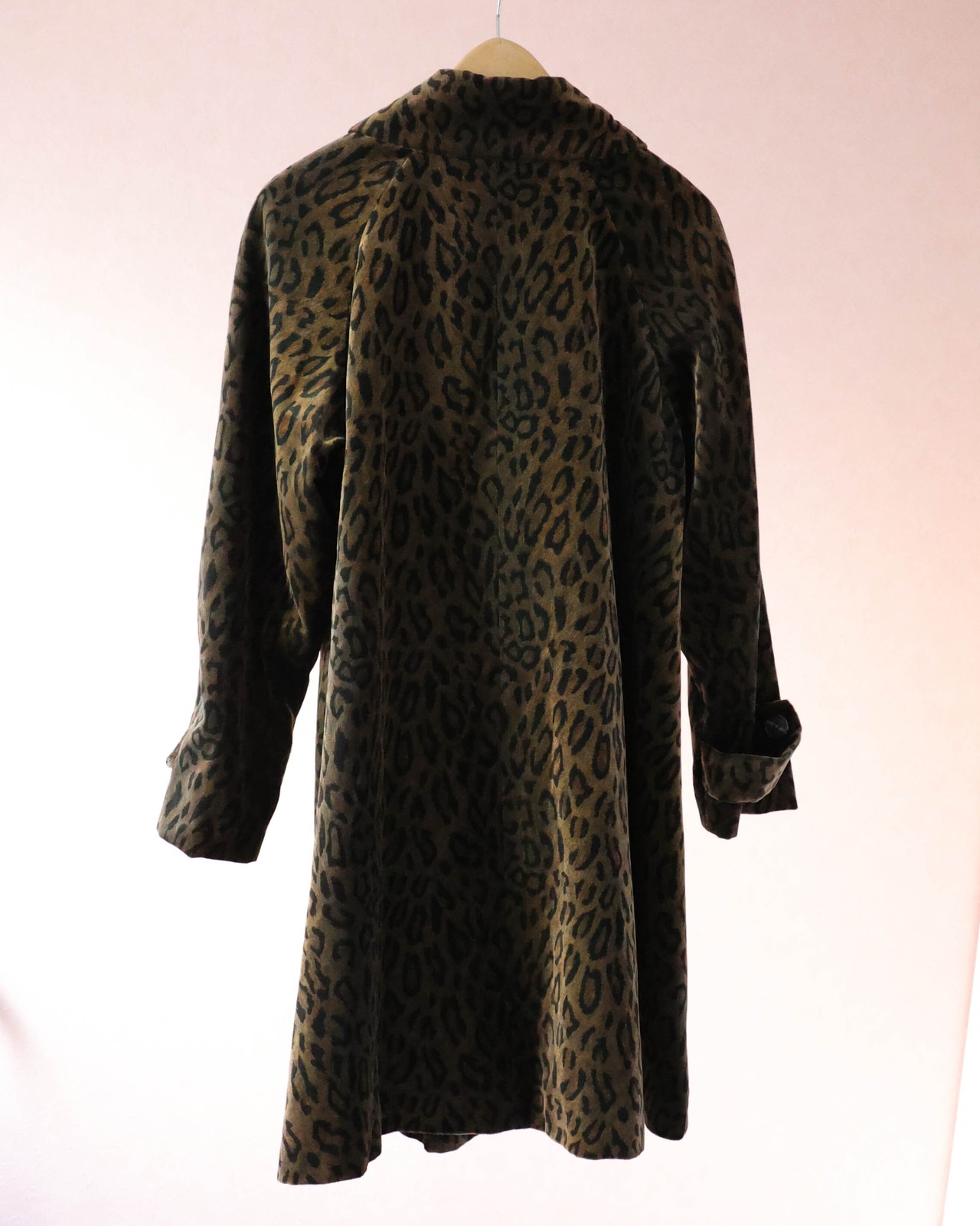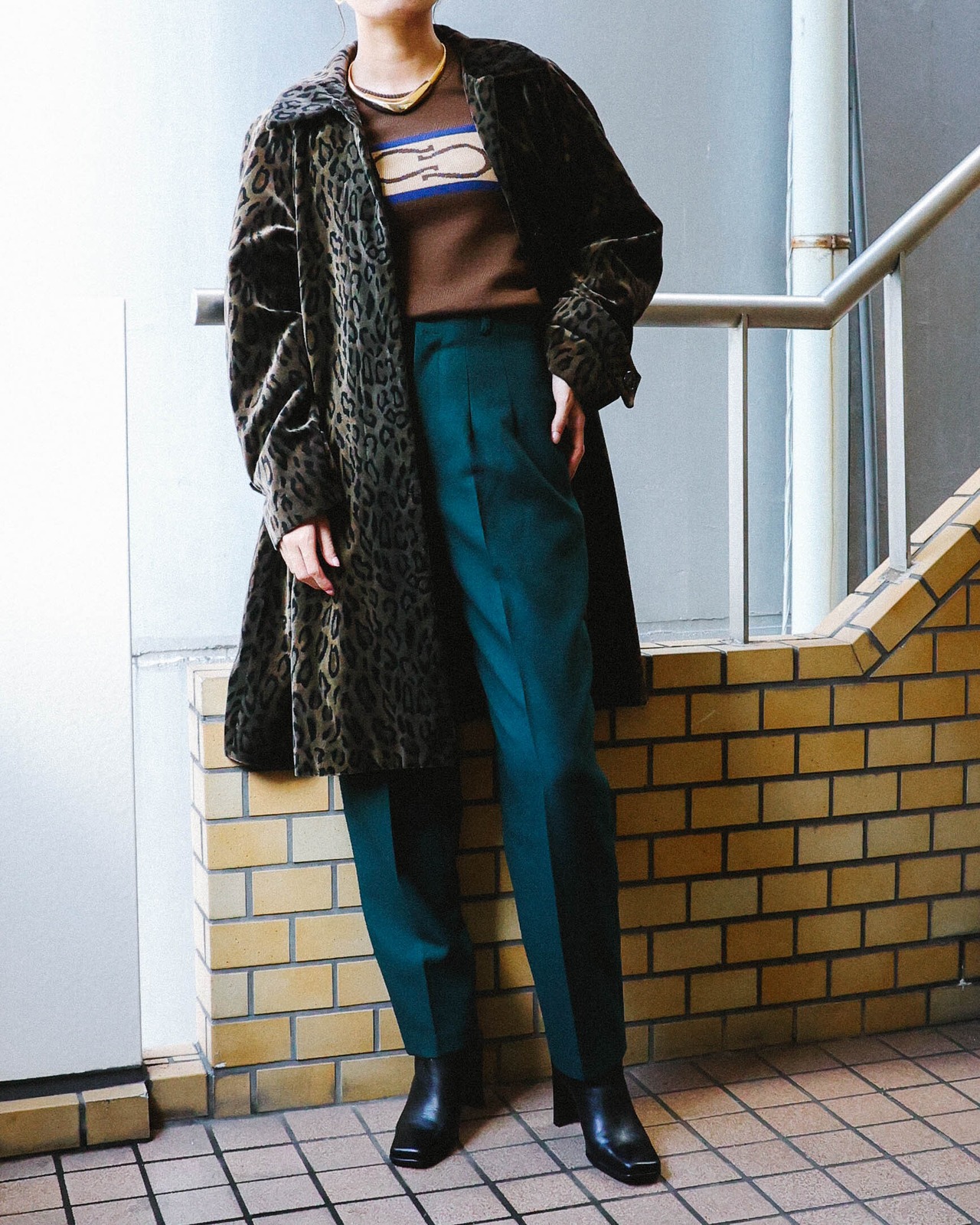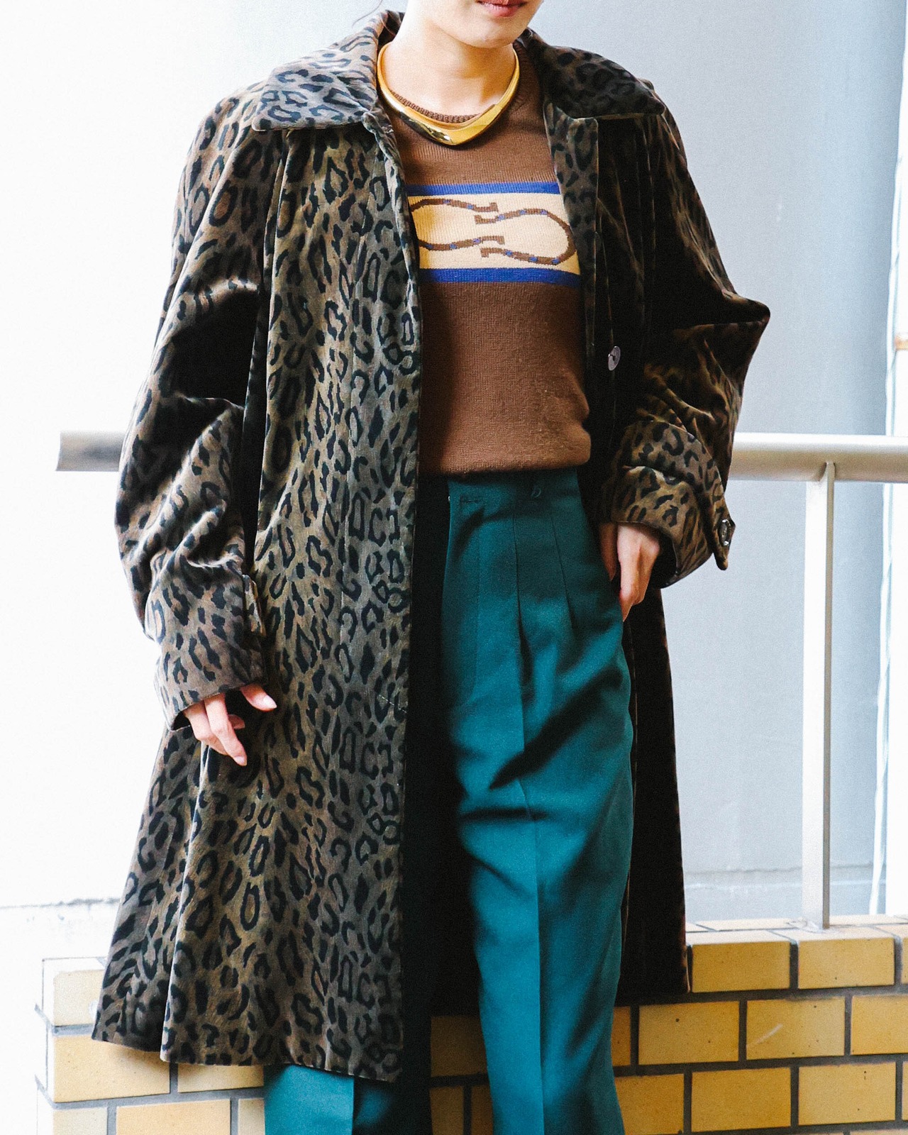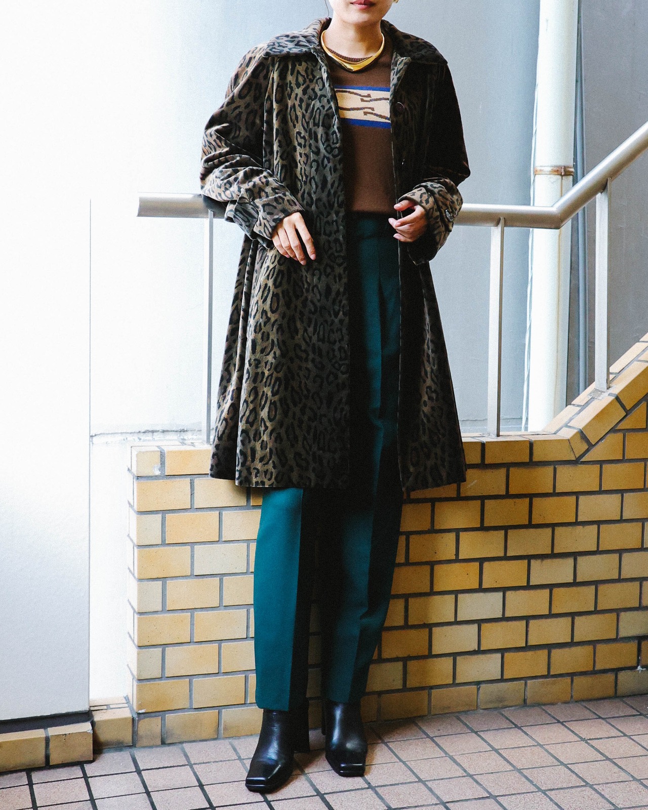 永遠と秋冬の定番柄のレオパード。80年代のこちらのコートは少しフレアな形でしっかりとした裏地が付いてます。ちょうど良い丈感に抑えめの色合いなので、カジュアル・フェミニン・綺麗目なスタイル…と意外にも様々な着こなだできる一着です。