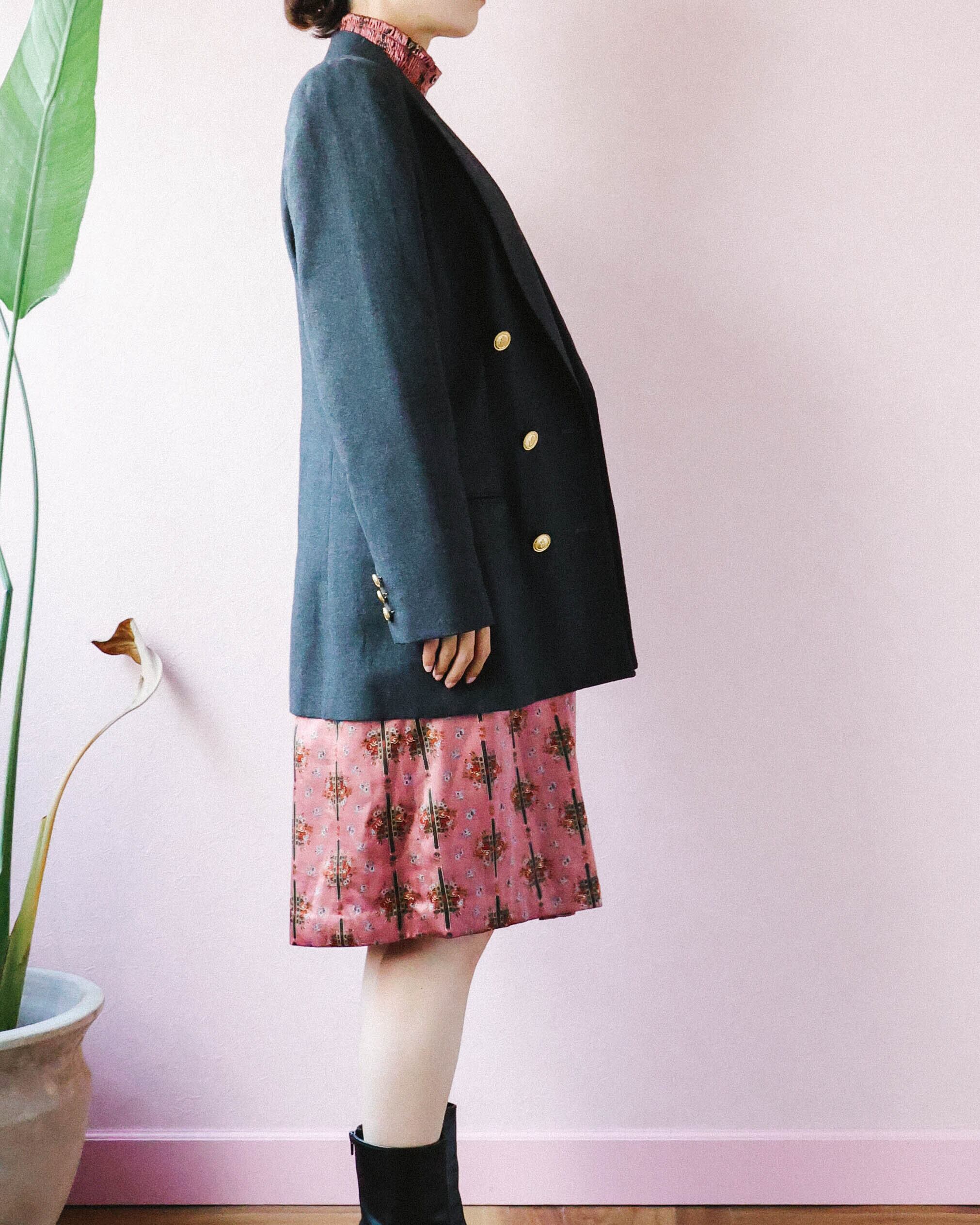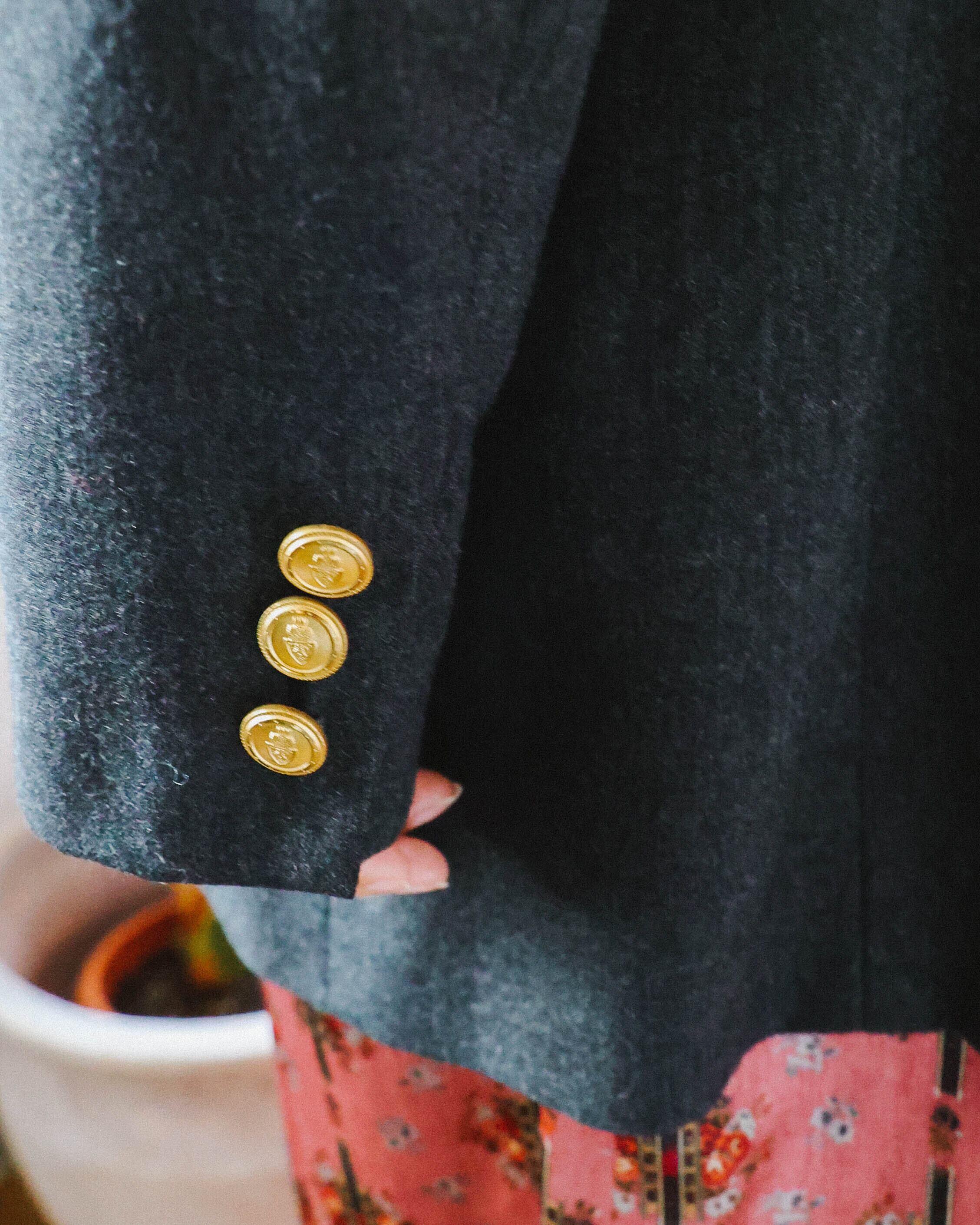 正統派なダブルボタンのシルエットにマットゴールドのボタン、乙女心をくすぐる程よいサイズ感。