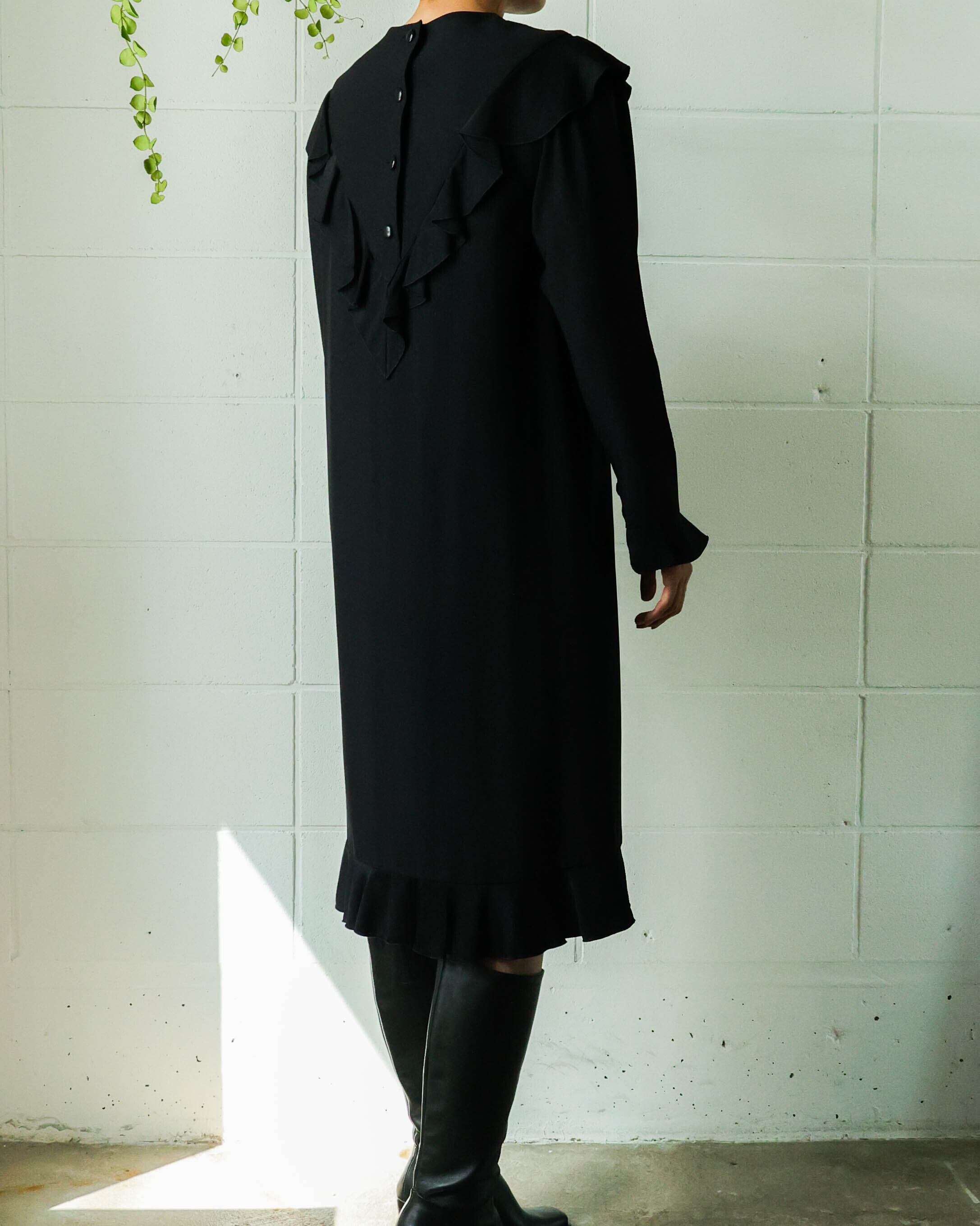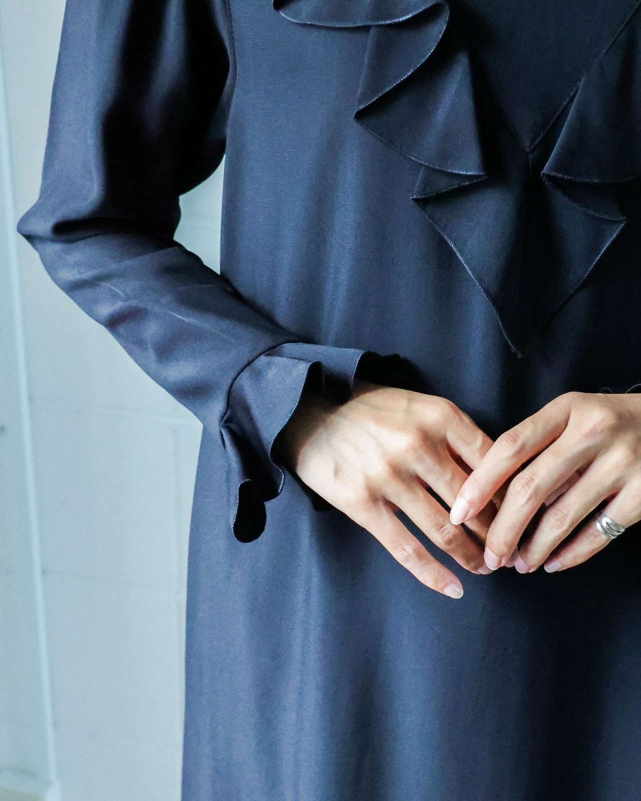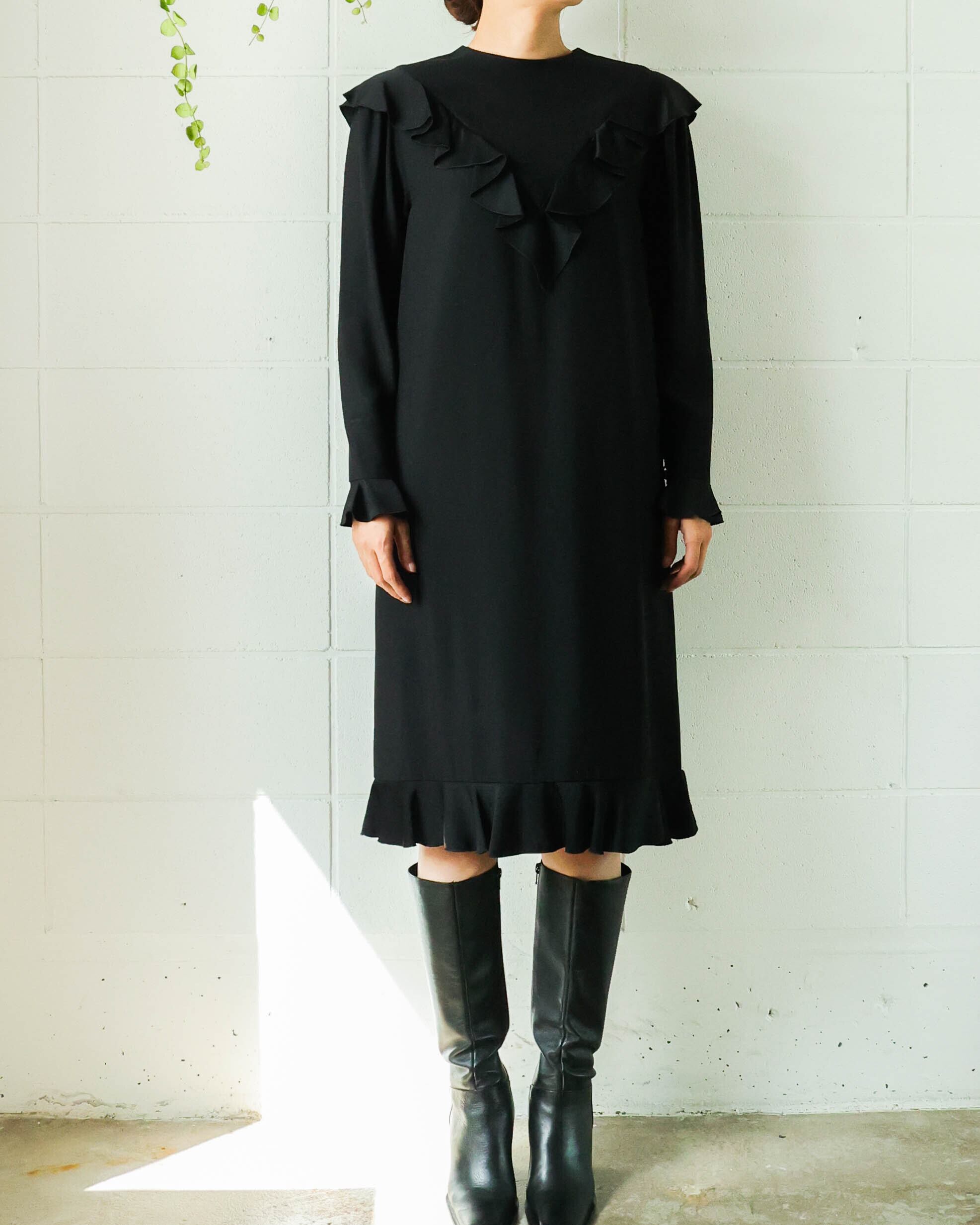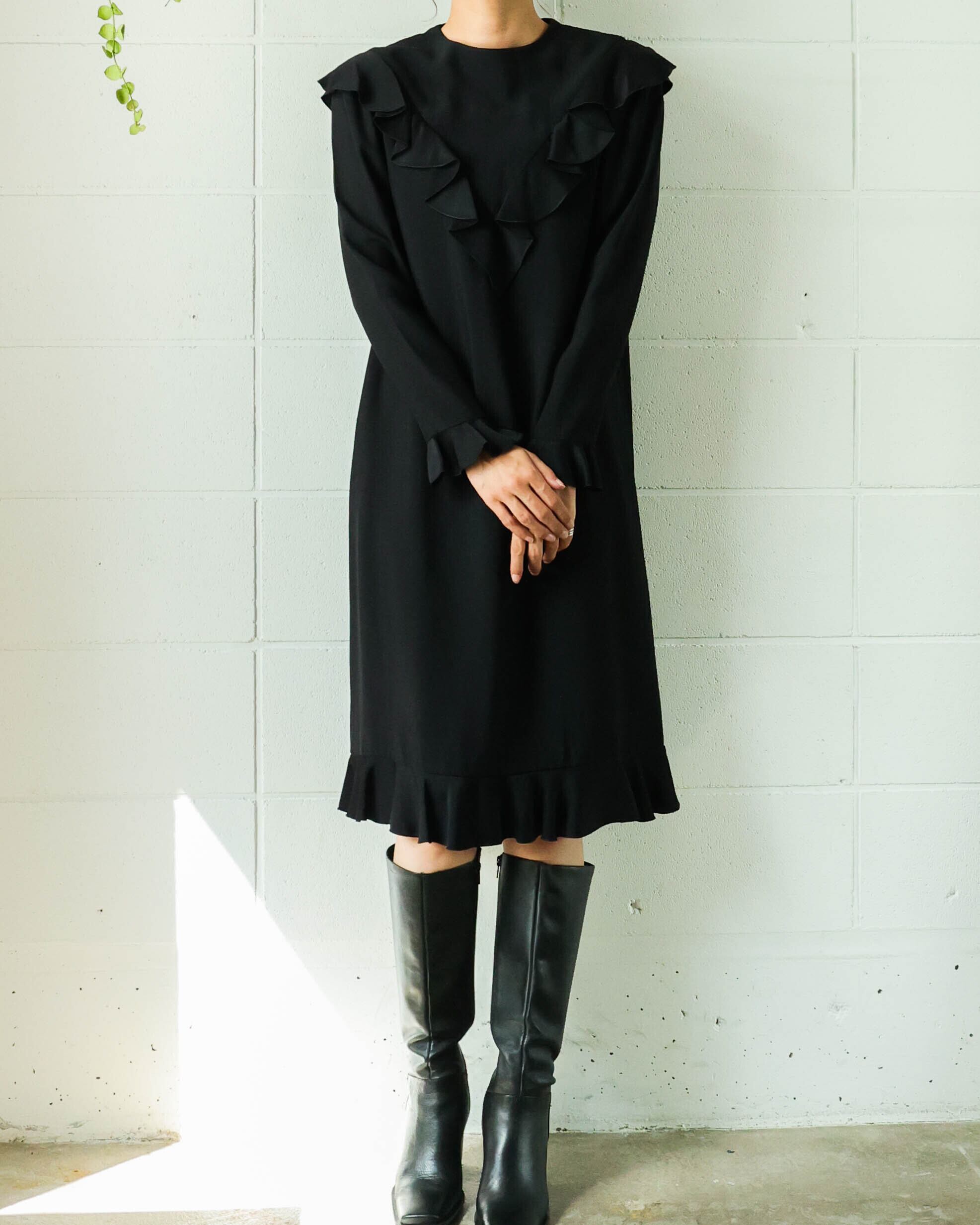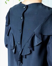 艶やかなブラックと程よく甘さをプラスする控えめなフリルが大人の女性らしさを演出。着心地滑らかな上質素材が上品でしなやかな印象に。ロングブーツやレイヤードとも相性の良い丈に加え、体型カバーもしてくれるシルエットは様々なシーンで重宝します。